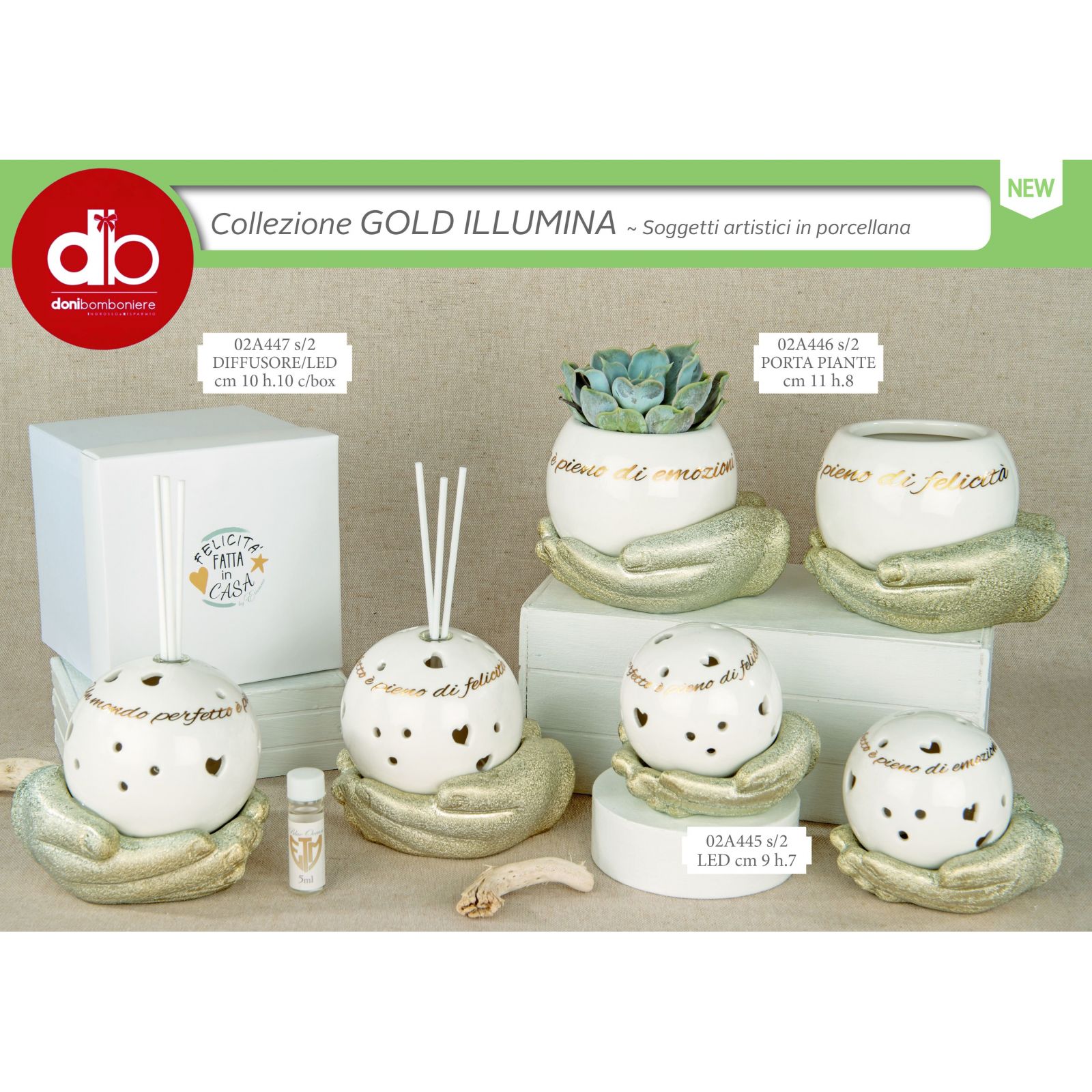 La sfera bianca, decorata con frasi in oro, poggia su mani dorate che rappresentano unione e sostegno reciproco. Questo design raffinato arricchisce ogni ambiente e trasmette un messaggio di positività e affetto, rendendolo una bomboniera originale ed economica per nozze d’oro o qualsiasi celebrazione speciale.