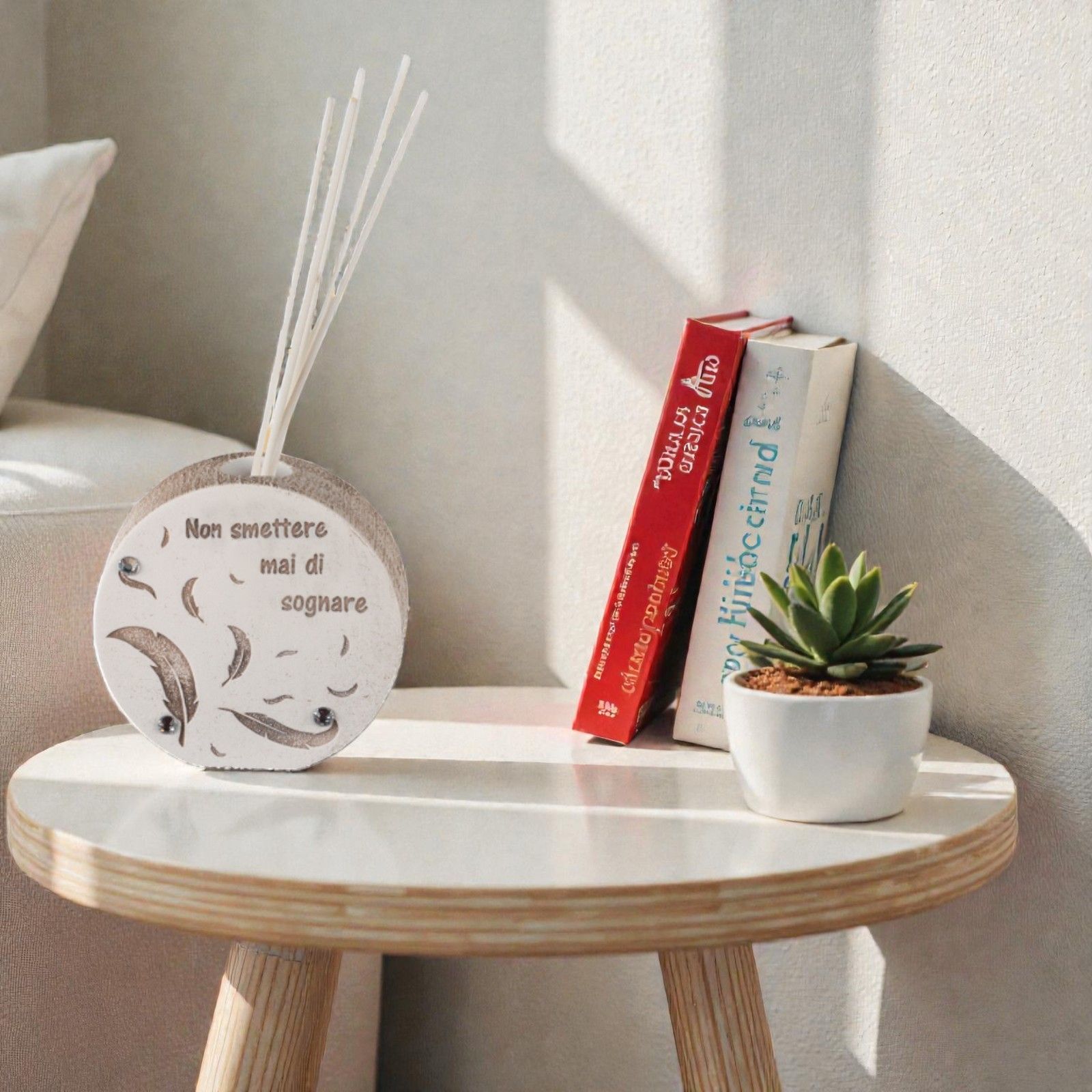 Scopri il nostro Diffusore Tondo "Non Smettere Mai di Sognare", un'idea regalo che parla direttamente al cuore. Questa elegante bomboniera è perfetta per celebrare momenti indimenticabili come battesimi, comunioni, cresime e matrimoni. Ogni diffusore è un inno alla speranza e alla bellezza dei sogni, un modo unico per esprimere i tuoi migliori auguri ai tuoi cari.