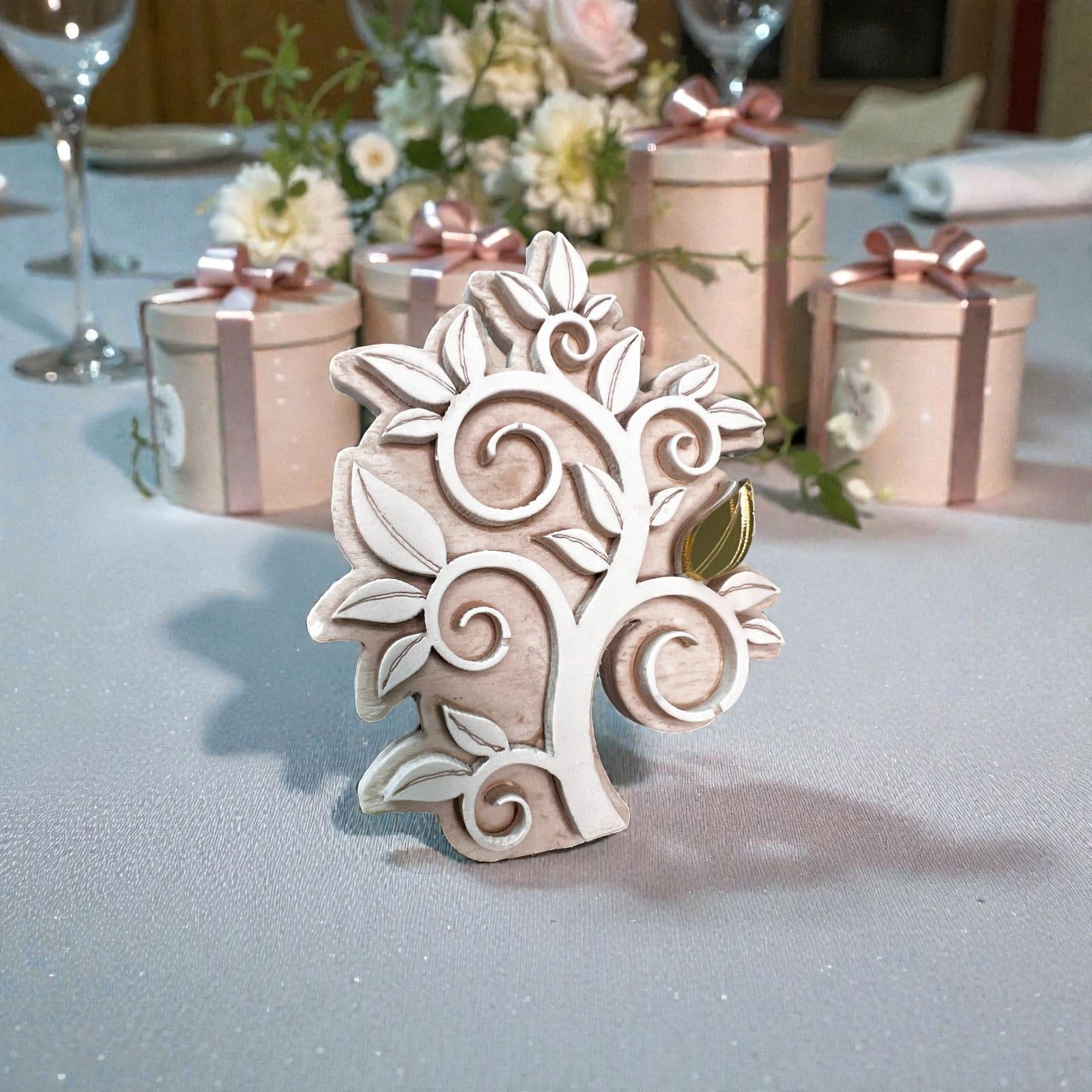 Scopri la meraviglia di un regalo che racconta storie di vita e amore con la nostra esclusiva icona a forma di Albero della Vita, impreziosita da foglie in plexiglass dorato. Questo simbolo di crescita e rinascita è la bomboniera perfetta per celebrare momenti indimenticabili come battesimi, comunioni, cresime, matrimoni e anniversari. Ogni volta che sarà ammirata, porterà con sé un messaggio di unione e felicità, rendendo ogni evento ancora più speciale.