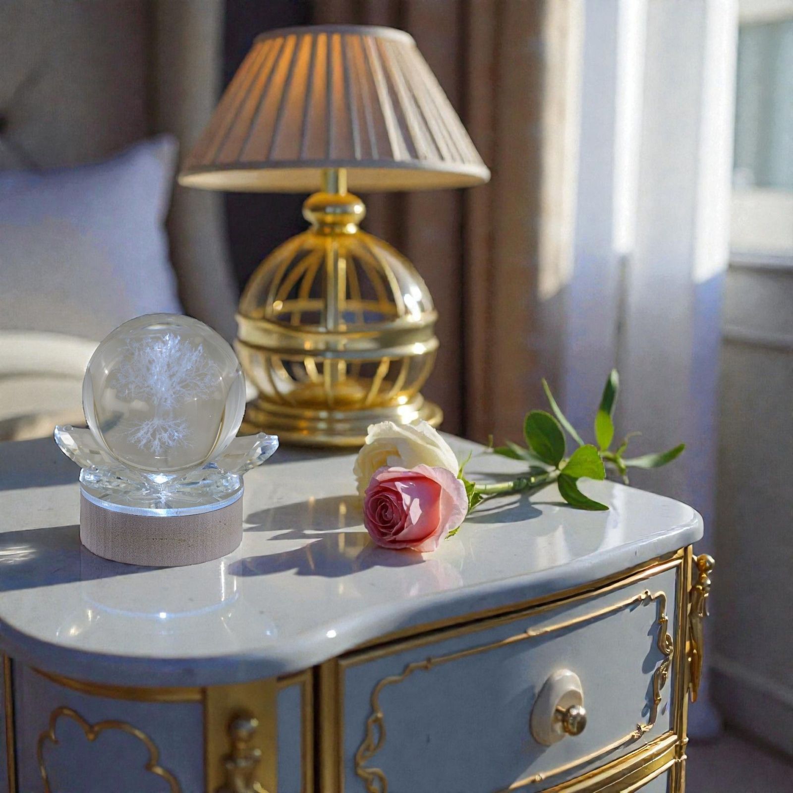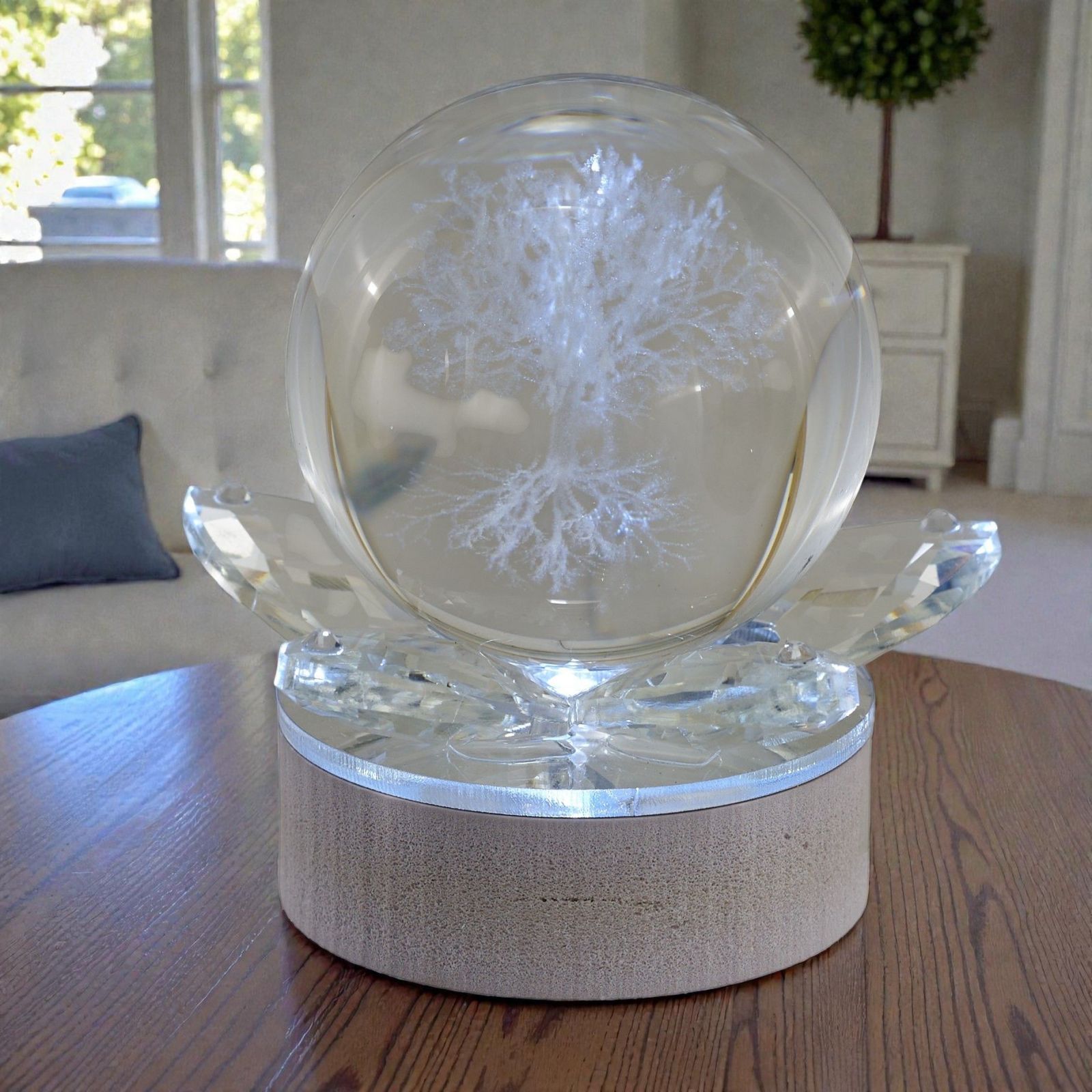 Regalati un momento di pura magia con la nostra bomboniera sfera LED, un'opera d'arte che illumina ogni evento speciale. All'interno di un'elegante base in legno naturale, il modulo LED proietta l'incantevole albero della vita, simbolo di crescita e amore eterno. Perfetta per matrimoni e anniversari, questa bomboniera rappresenta non solo un ricordo, ma anche un messaggio di Speranza e connessione tra le persone.