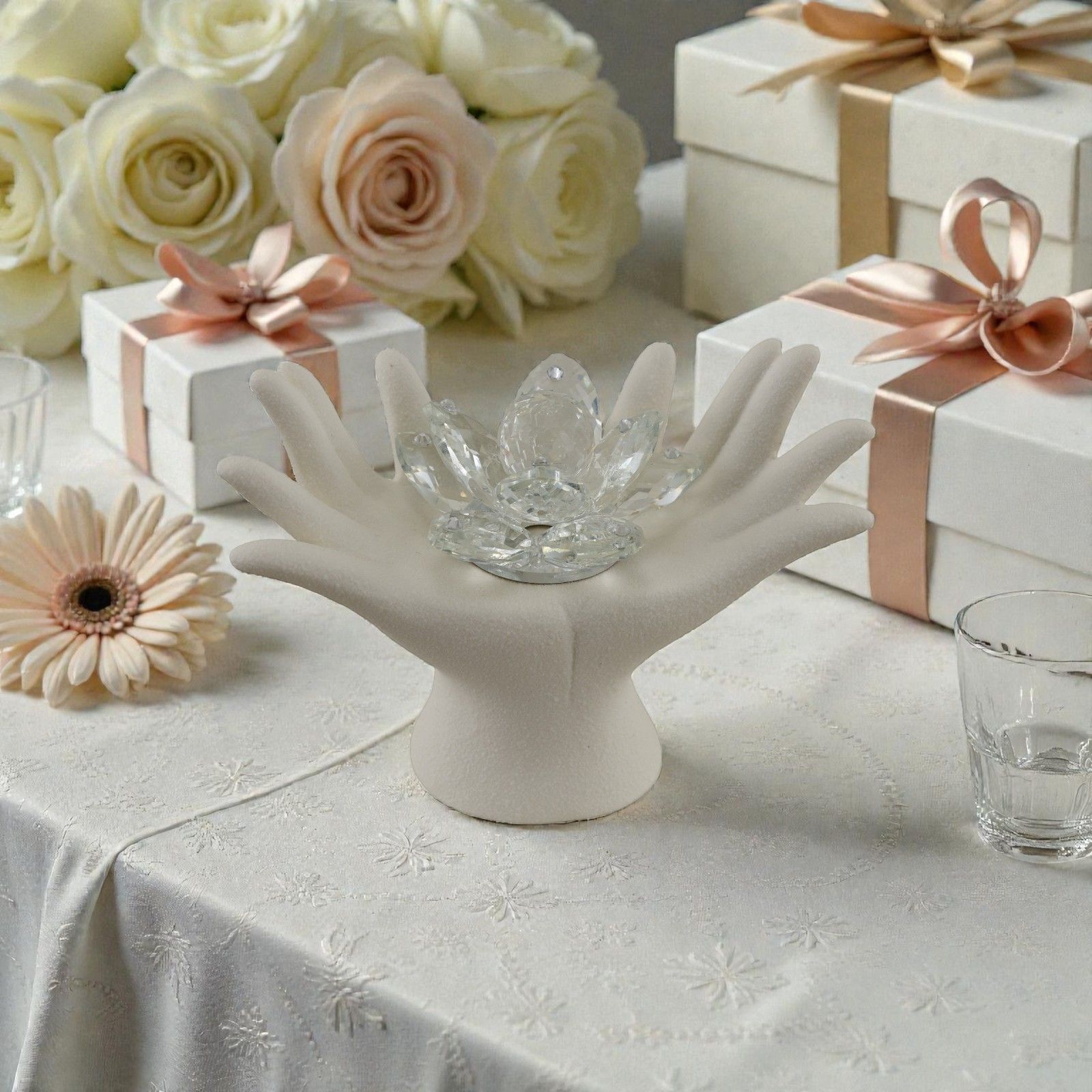 Scopri l'eleganza senza tempo delle nostre bomboniere "Mani Unite con Fiore in Swarovski". Questo straordinario pezzo rappresenta l'amore e l'unione, rendendolo un regalo ideale per celebrare eventi speciali come matrimoni e anniversari. Ogni dettaglio è un inno alla bellezza, catturando l'essenza di momenti indimenticabili e trasformando ogni celebrazione in un ricordo prezioso.