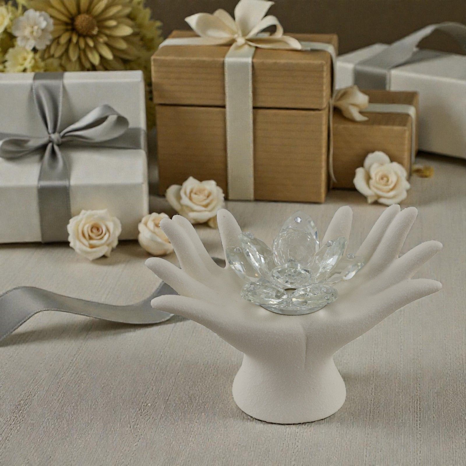 Non perdere l'opportunità di stupire con un'idea bomboniera che trasmette amore e raffinatezza. Scegli le nostre "Mani Unite con Fiore in Swarovski" e fai sì che il tuo giorno speciale sia accompagnato da un simbolo di unione e gioia, destinato a diventare un tesoro per chi lo riceve.