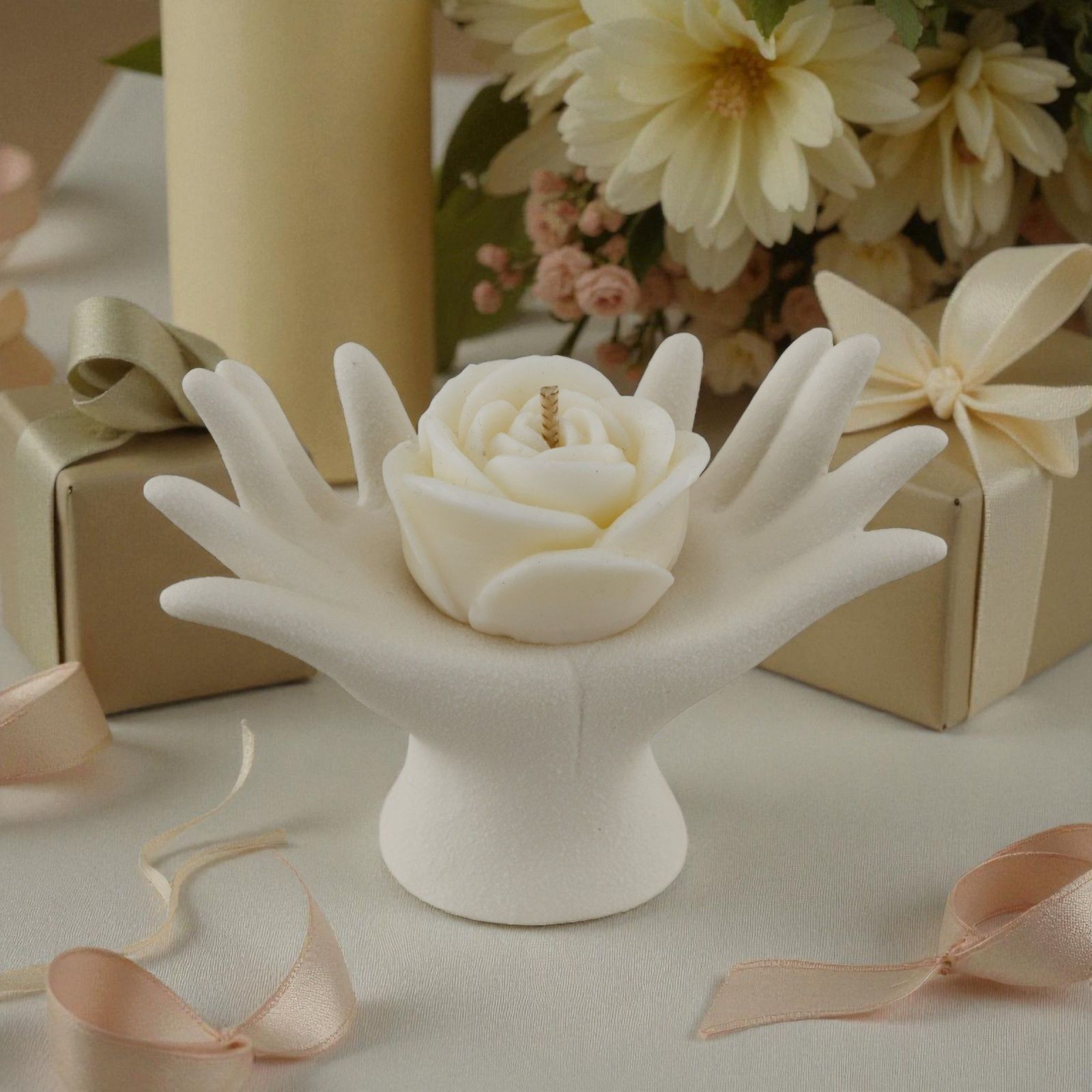 In un universo di emozioni, la bomboniera che stai cercando è un simbolo di unione e amore eterno. Le mani unite con la candela a forma di rosa rappresentano l'essenza di un matrimonio o di un anniversario, offrendo un ricordo tangibile di un momento speciale. Questa bomboniera originale non è solo un oggetto decorativo, ma un messaggio di affetto e connessione tra due cuori.