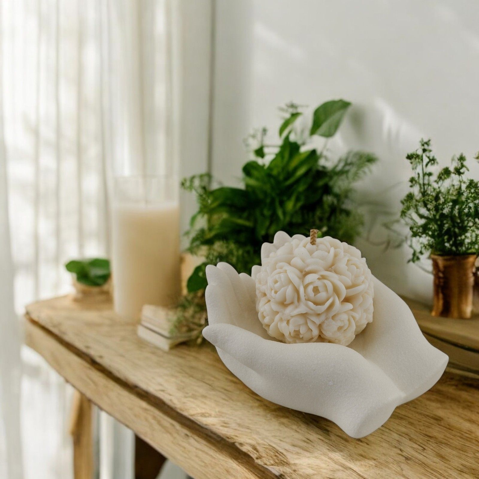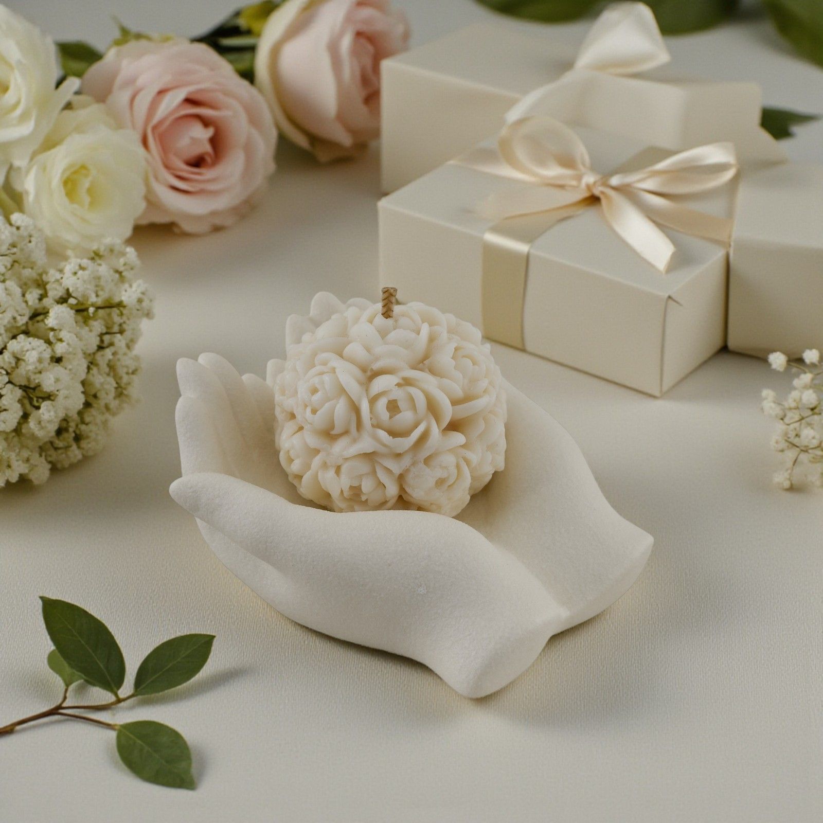 Ti invitiamo a scoprire la nostra bomboniera unica nel suo genere: una mano con candela a forma di sfera adornata con eleganti rose. Questo pezzo non è solo un regalo, ma un simbolo di amore e gratitudine da condividere nei momenti più speciali della vita, come una comunione o un matrimonio. Ogni dettaglio è pensato per trasmettere emozioni e lasciare un ricordo indelebile nei cuori dei tuoi ospiti.