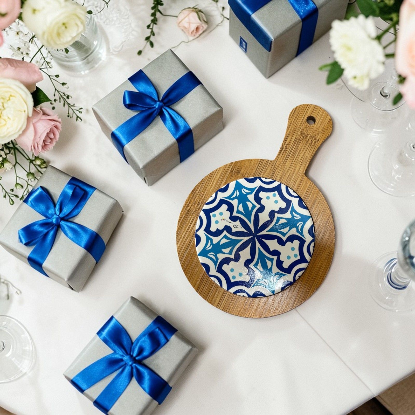 Regala ai tuoi invitati un tocco di tradizione siciliana con questo elegante tagliere tondo. Realizzato in legno con una raffinata maiolica blu al centro, diventa una bomboniera utile e decorativa perfetta per matrimoni e comunioni. Ogni dettaglio racconta un gesto di cura e attenzione verso chi partecipa al tuo evento speciale.