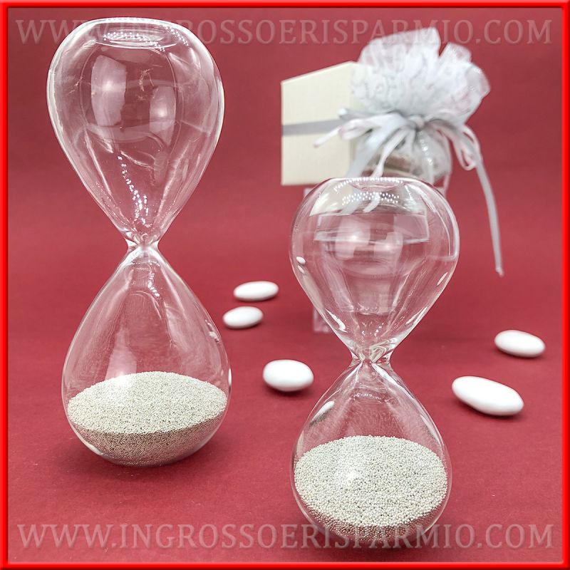 Clessidra vetro elegante per idee bomboniere originali matrimonio, bomboniere battesimo, bomboniere comunione, bomboniere anniversario nozze d'argento.