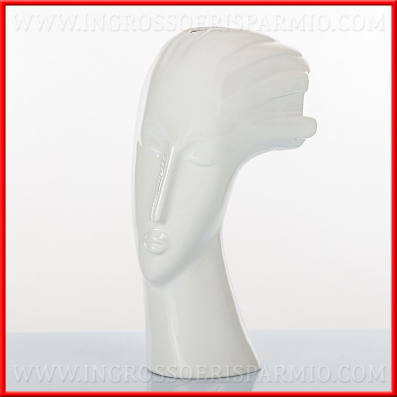 Vasi design moderno a forma di viso donna, realizzati in fine ceramica bianca e lucida, che ben si adatta ad ogni tipo d'ambienti. Utilizzabile come vaso fiori o come vaso ornamentale.