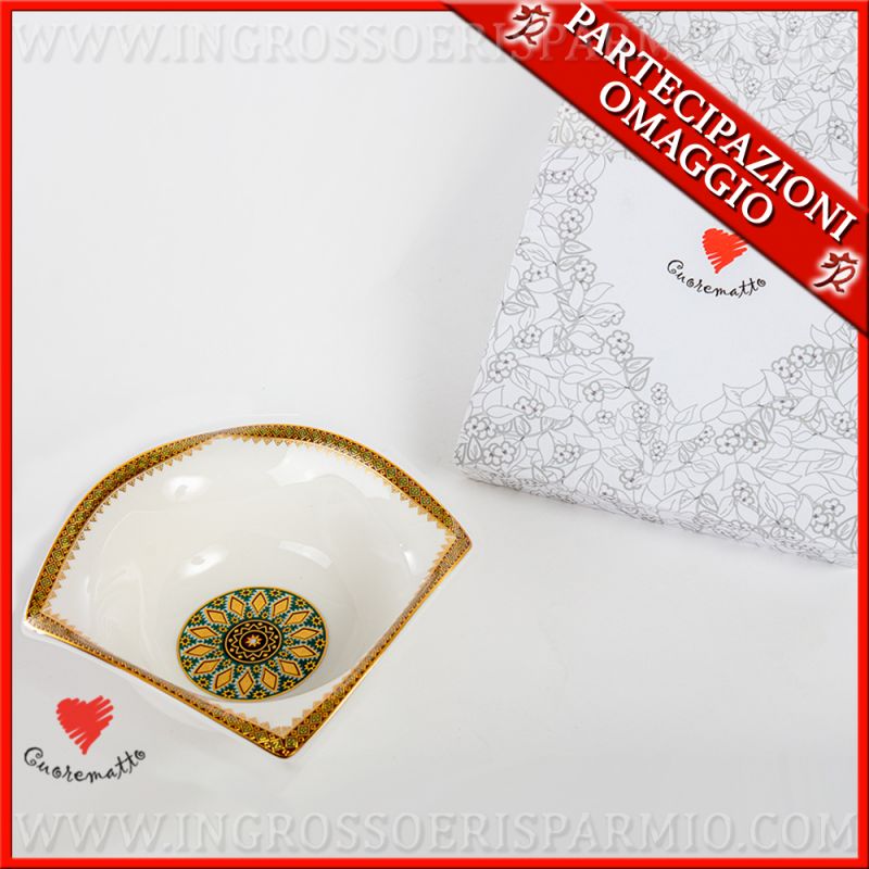 Bomboniere matrimonio in porcellana, oggetto d'arredo da utilizzare anche come bomboniera anniversario, nozze oro: collezione bomboniere solidali Cuorematto.