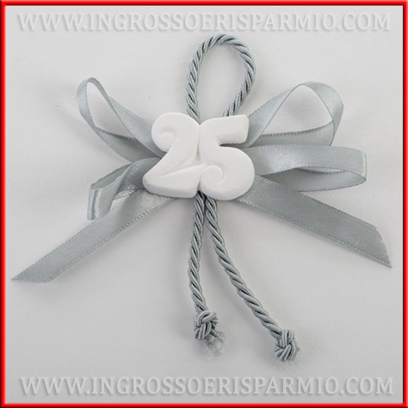 Gessi decorati con fiocchi, da utilizzare come accessori per confezioni bomboniere anniversario di matrimonio, 25 anni, o come segnaposto nozze d'argento o per decorare una confettata, rendendola specifica per l'evento.