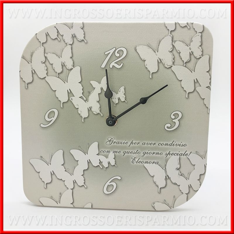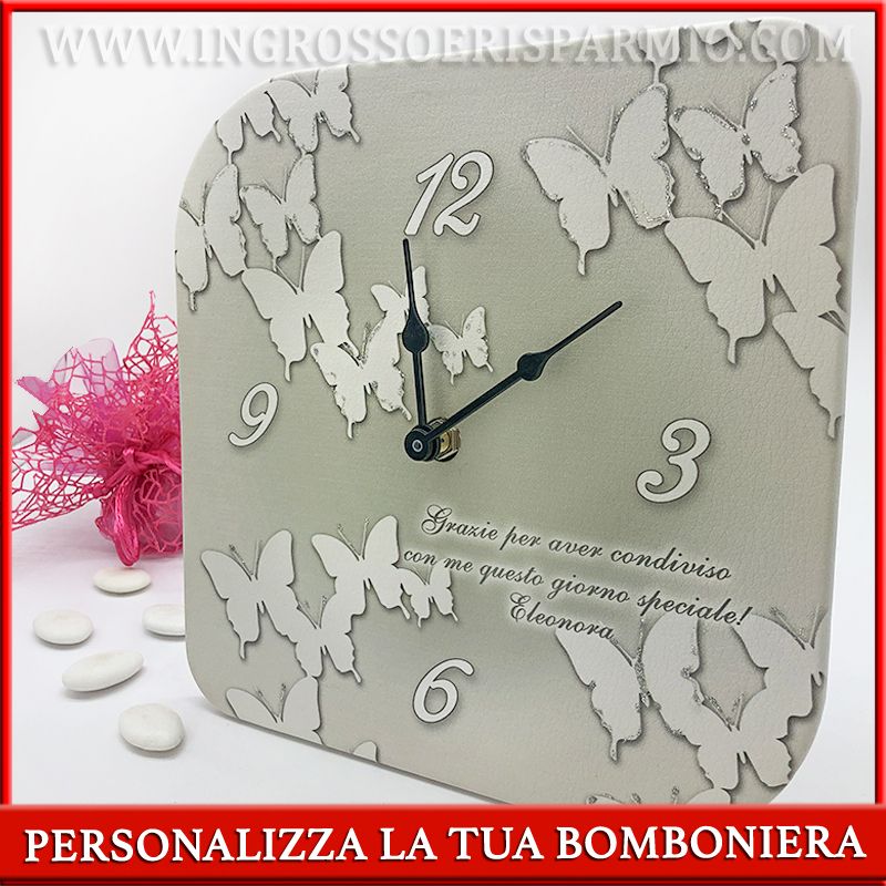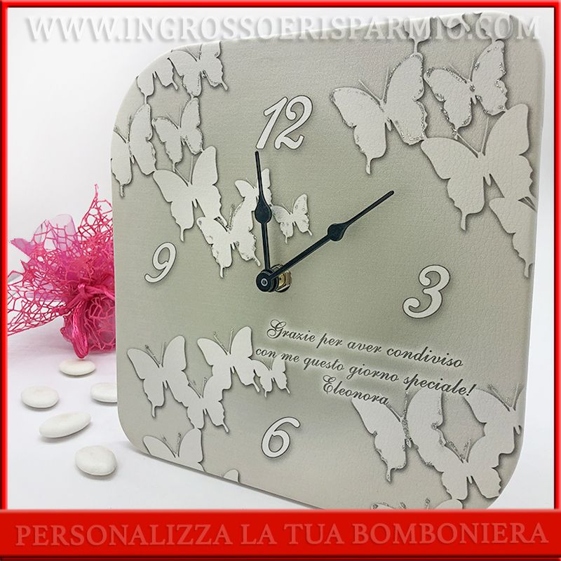 Orologi moderni ed eleganti decoro farfalla, ideali per bomboniere utili da utilizzare in occasione di comunioni, cresime, matrimoni ed eventi di ogni tipo!