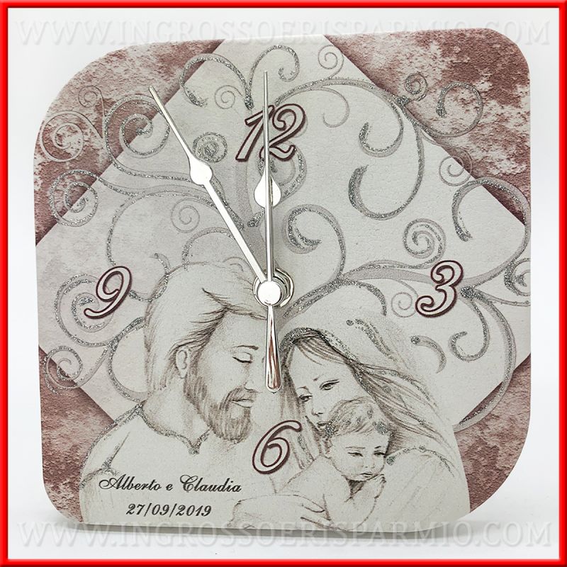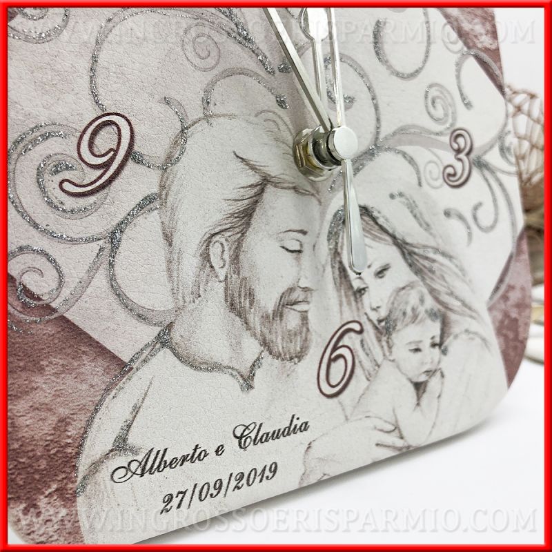 ACQUISTA BOMBONIERE PERSONALIZZATE RICHIEDENDO LA STAMPA DI NOME/I E DATA SULL'OROLOGIO SACRA FAMIGLIA: il ricordo del tuo evento sarà impresso per sempre su questo orologio.