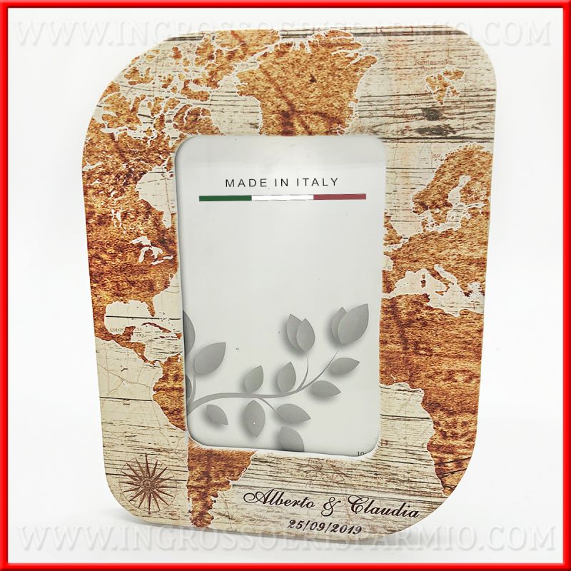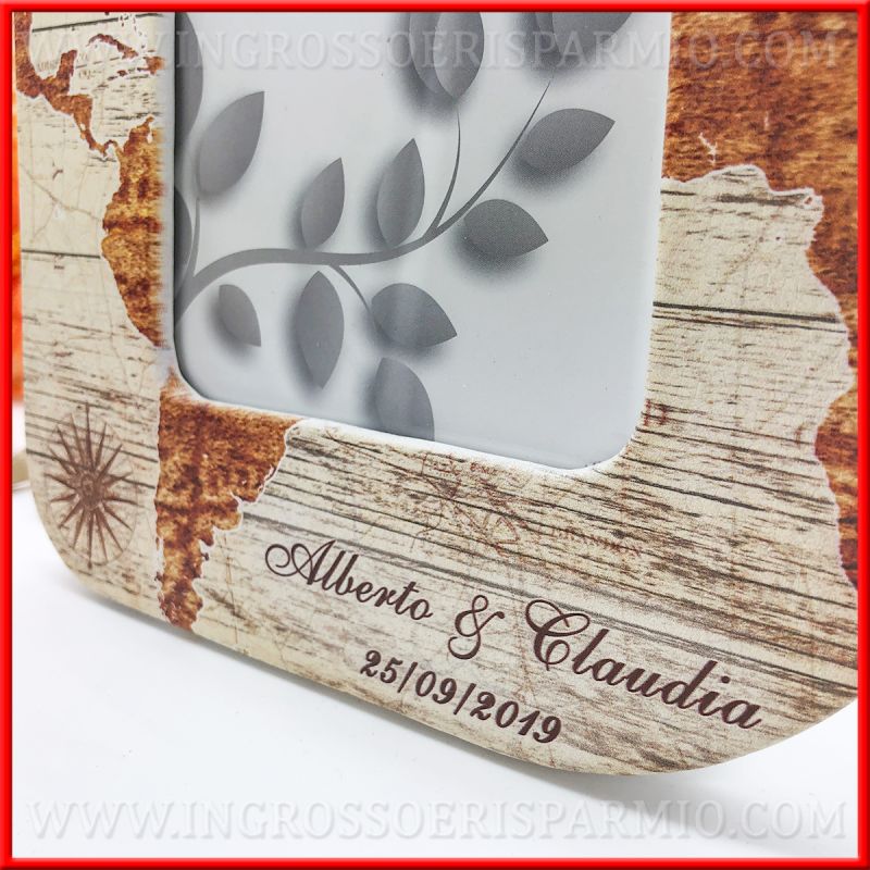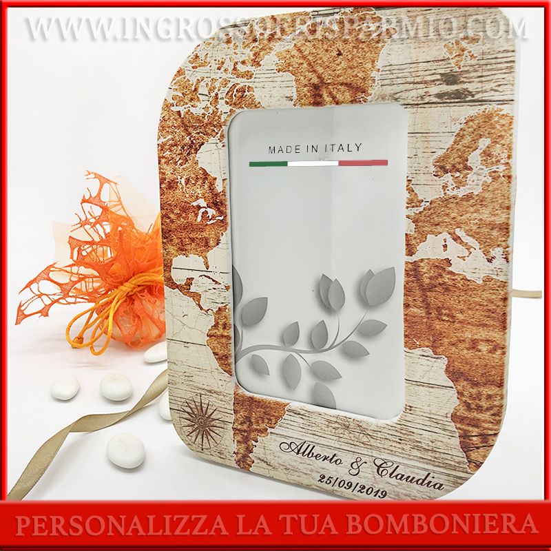 Portafoto con cornice vintage mappamondo per bomboniere originali matrimonio, comunione, laurea, ecc...