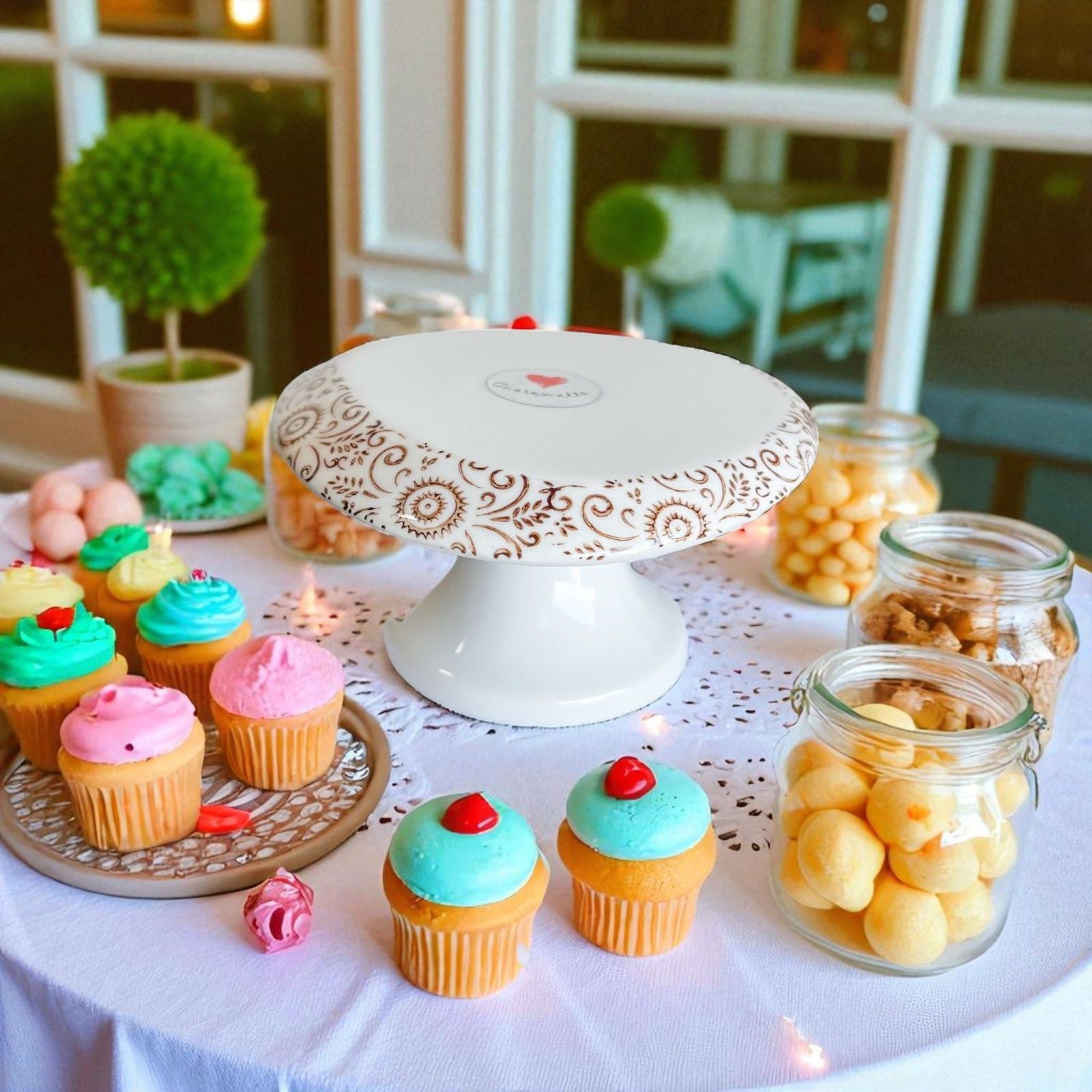 Ideale per cupcake e dolci monoporzione, questa elegante alzatina in ceramica presenta un delicato bordo decorato, rendendola un accessorio raffinato e utile per i tuoi eventi. Firmata Cuorematto, è proposta in offerta esclusiva a prezzi ingrosso sul nostro negozio online.