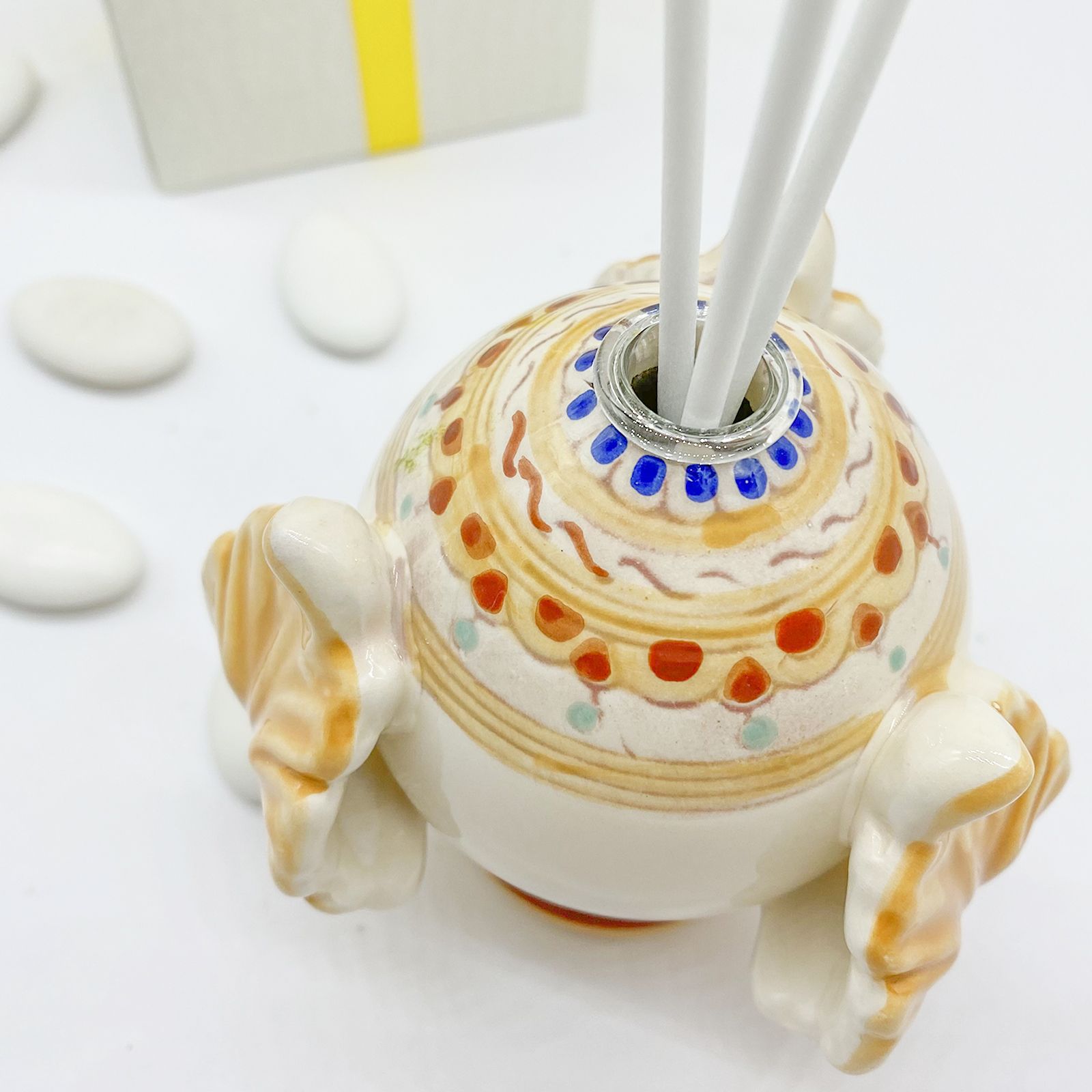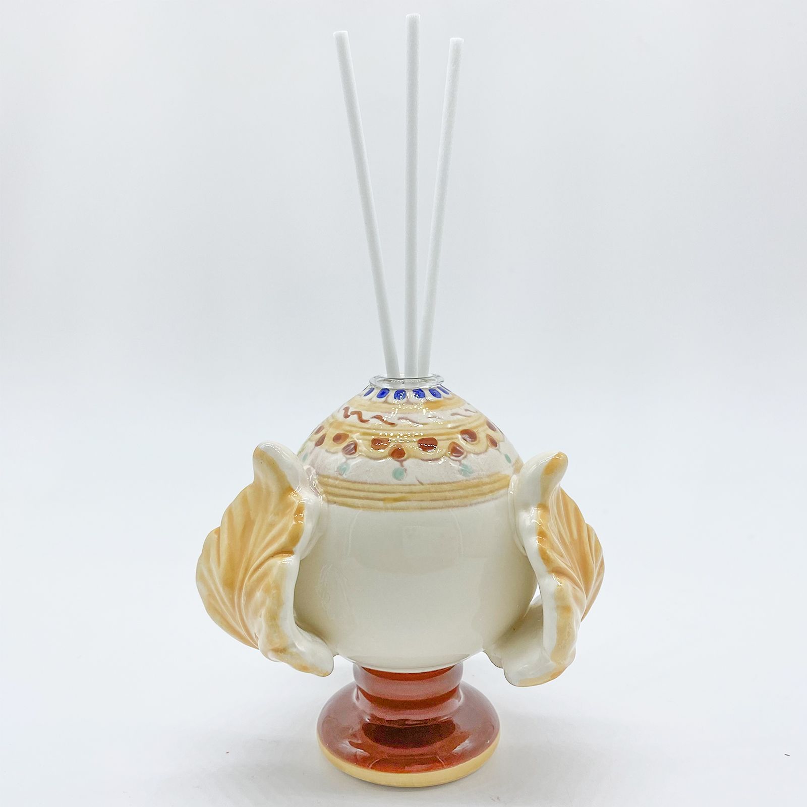 Questi diffusori di aromi sono delicatamente dipinti con delle tonalità in base crema con dettagli color zenzero, marrone e blu.