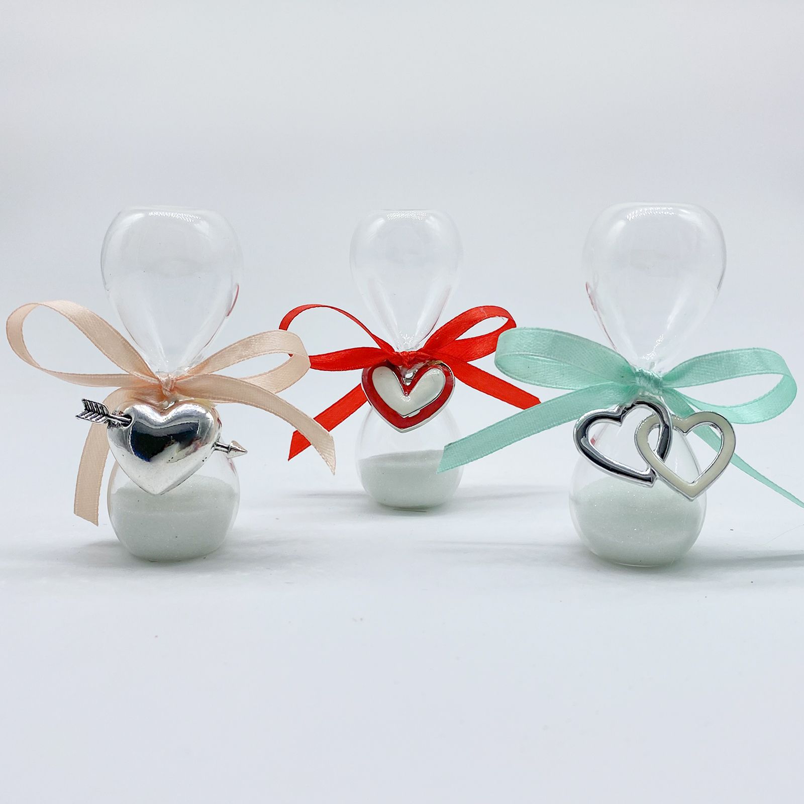 Ad ogni clessidra è abbinato un ciondolo a forma di cuore in metallo zama che potrai scegliere tra: