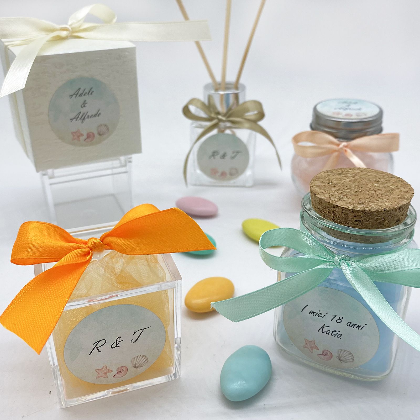 Realizza segnaposto tema mare senza sforzi! Rendi le tue bomboniere fai da te originali e uniche! Utilizza le nostre etichette personalizzate per le tue confettate tema mare, per realizzare portaconfetti matrimonio economici e per tutto quello che la tua fantasia può suggerirti!