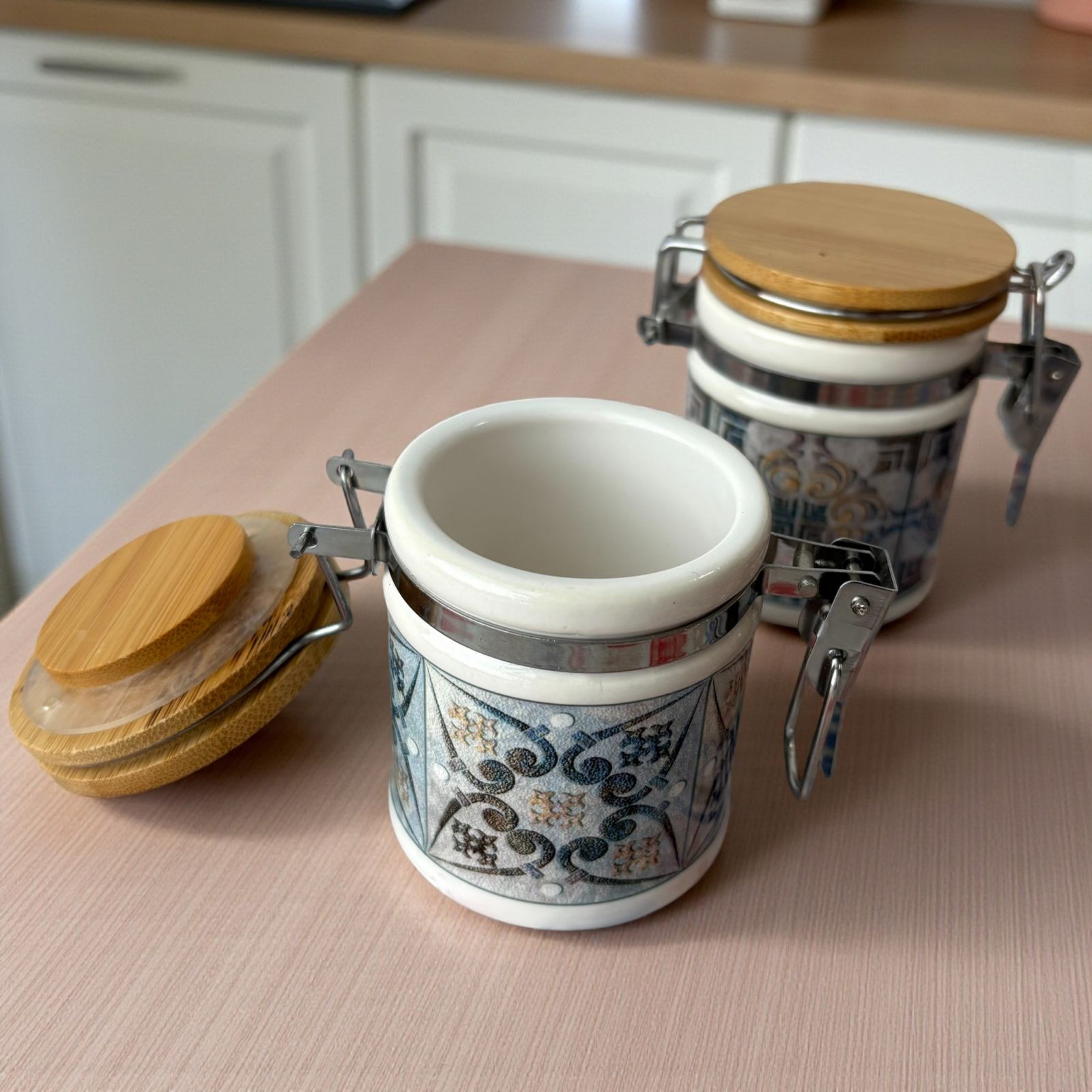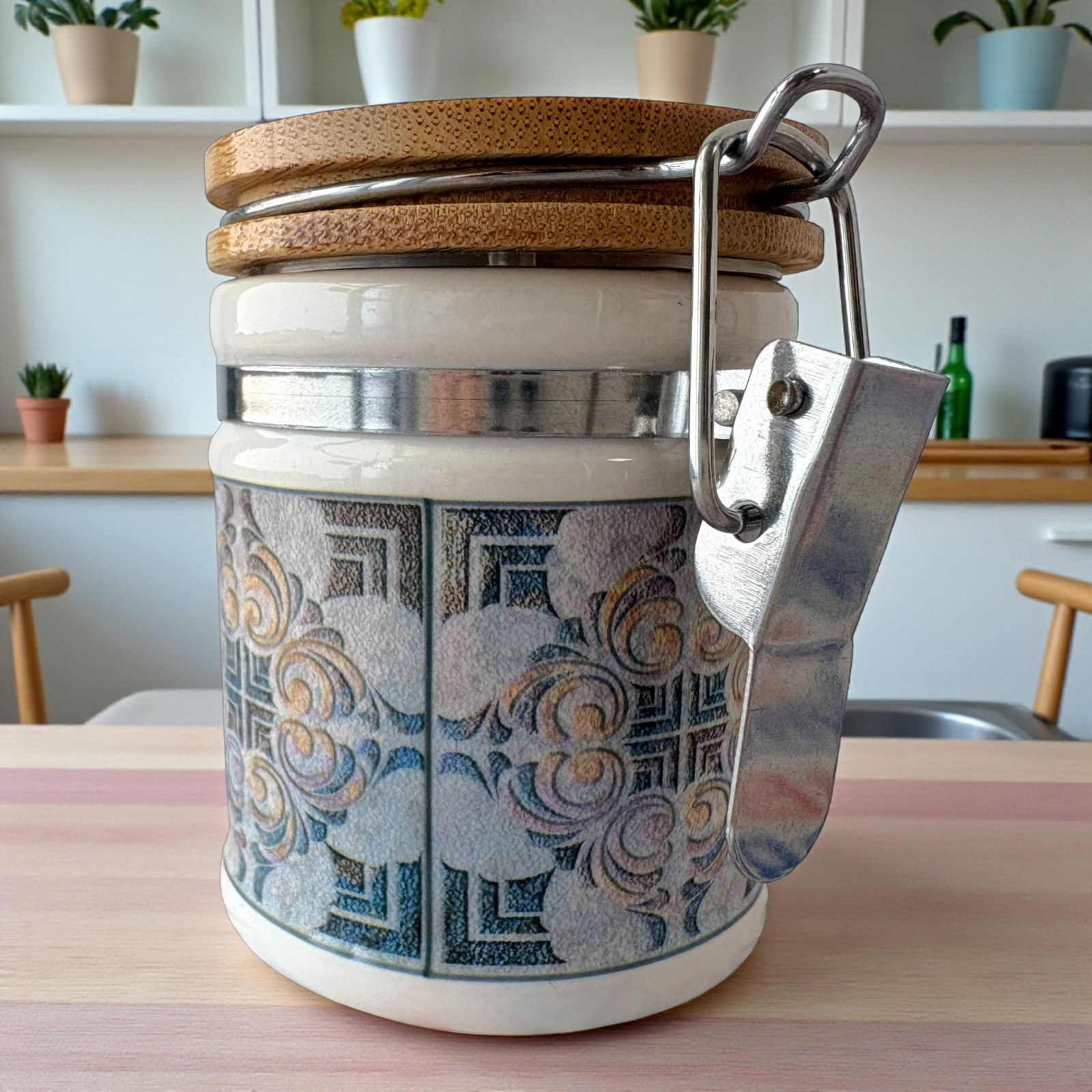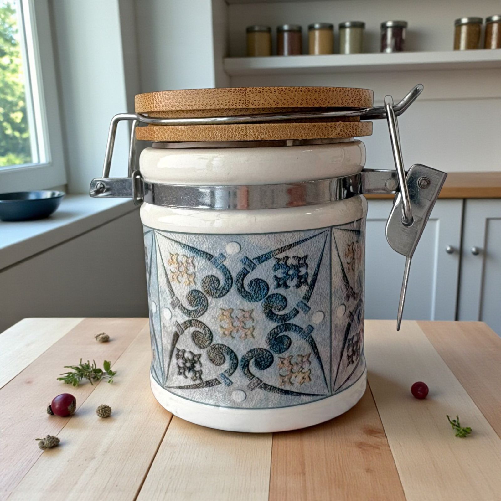 Acquista i nostri barattoli portaspezie in porcellana con chiusura ermetica a gancio in metallo e fantasia con decoro maiolica effetto vintage, dai toni leggermente scoloriti in tre assortimenti che differiscono tra loro per i motivi della decorazione.