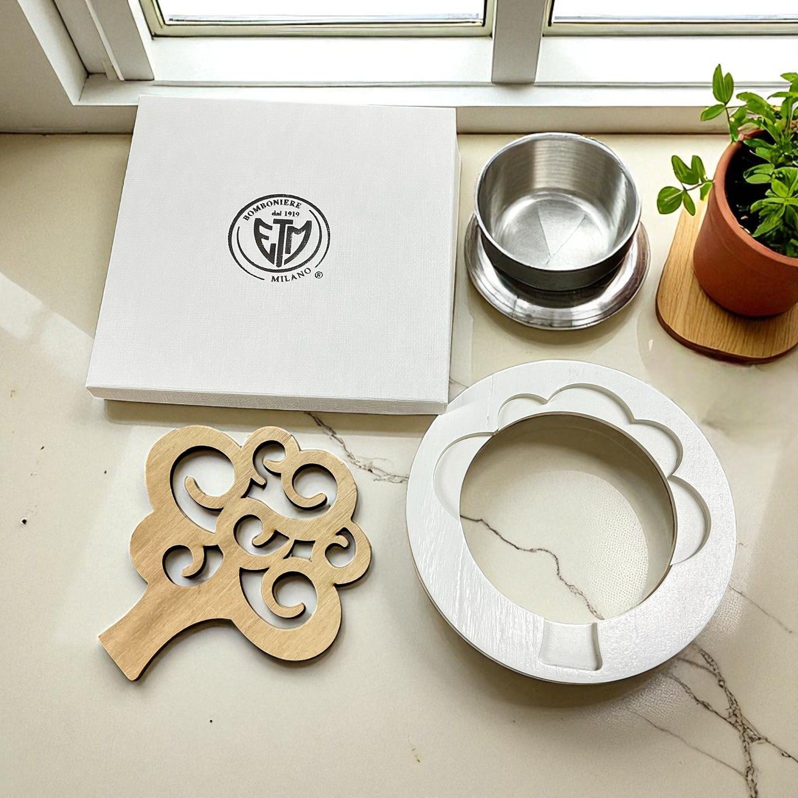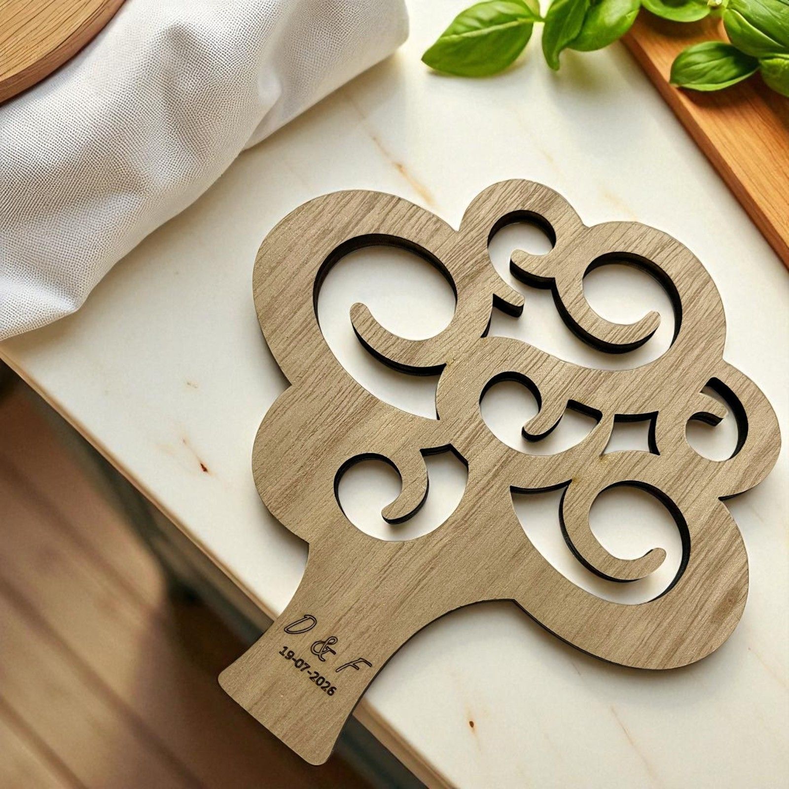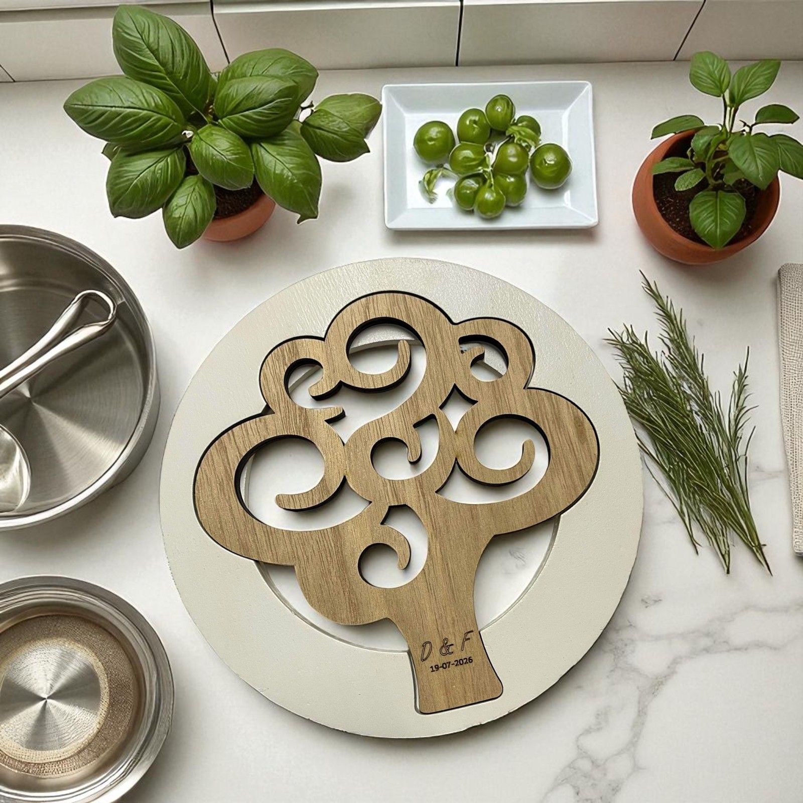 Per rendere il tuo regalo ancora più personale, puoi scegliere di incidere direttamente sul sottopentola le iniziali degli sposi e la data del tuo evento. Un tocco di eleganza e unicità che renderà ogni bomboniera un ricordo speciale e personalizzato, pensato esclusivamente per i tuoi ospiti.