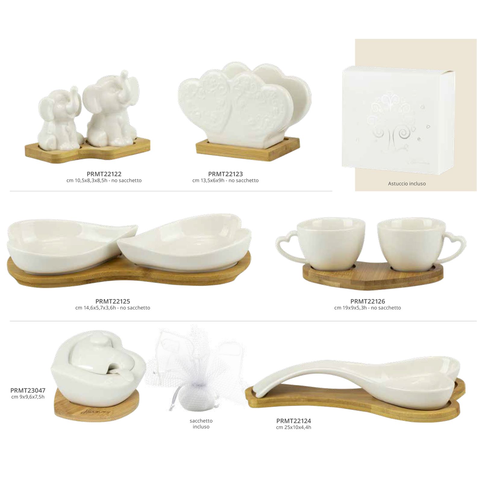 Scegli la praticità delle bomboniere utili che si coniuga con l'eleganza della porcellana bianca finissima e del bambù per la nostra collezione di oggetti da cucina.