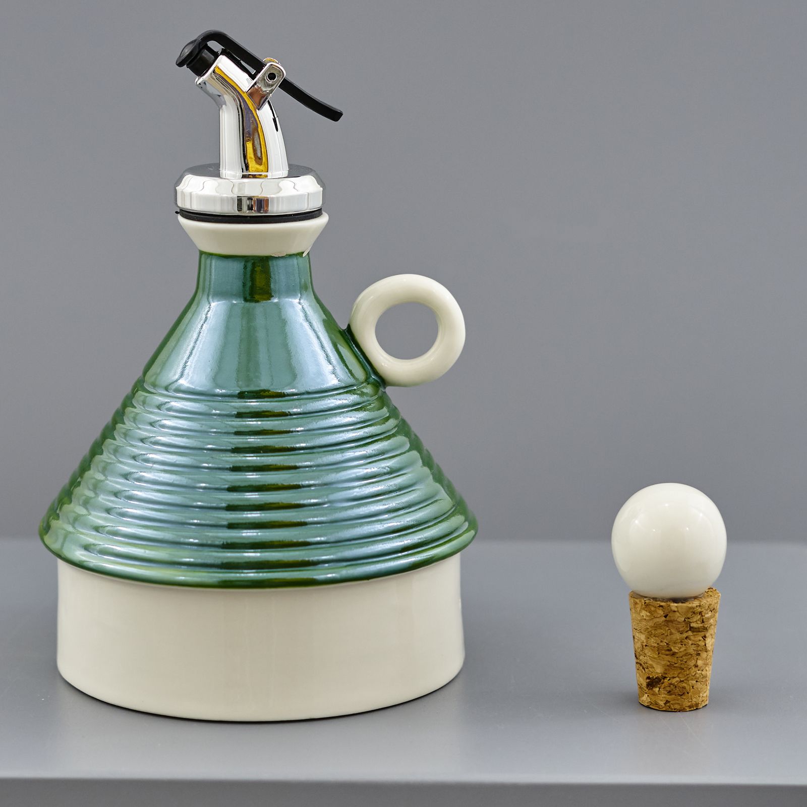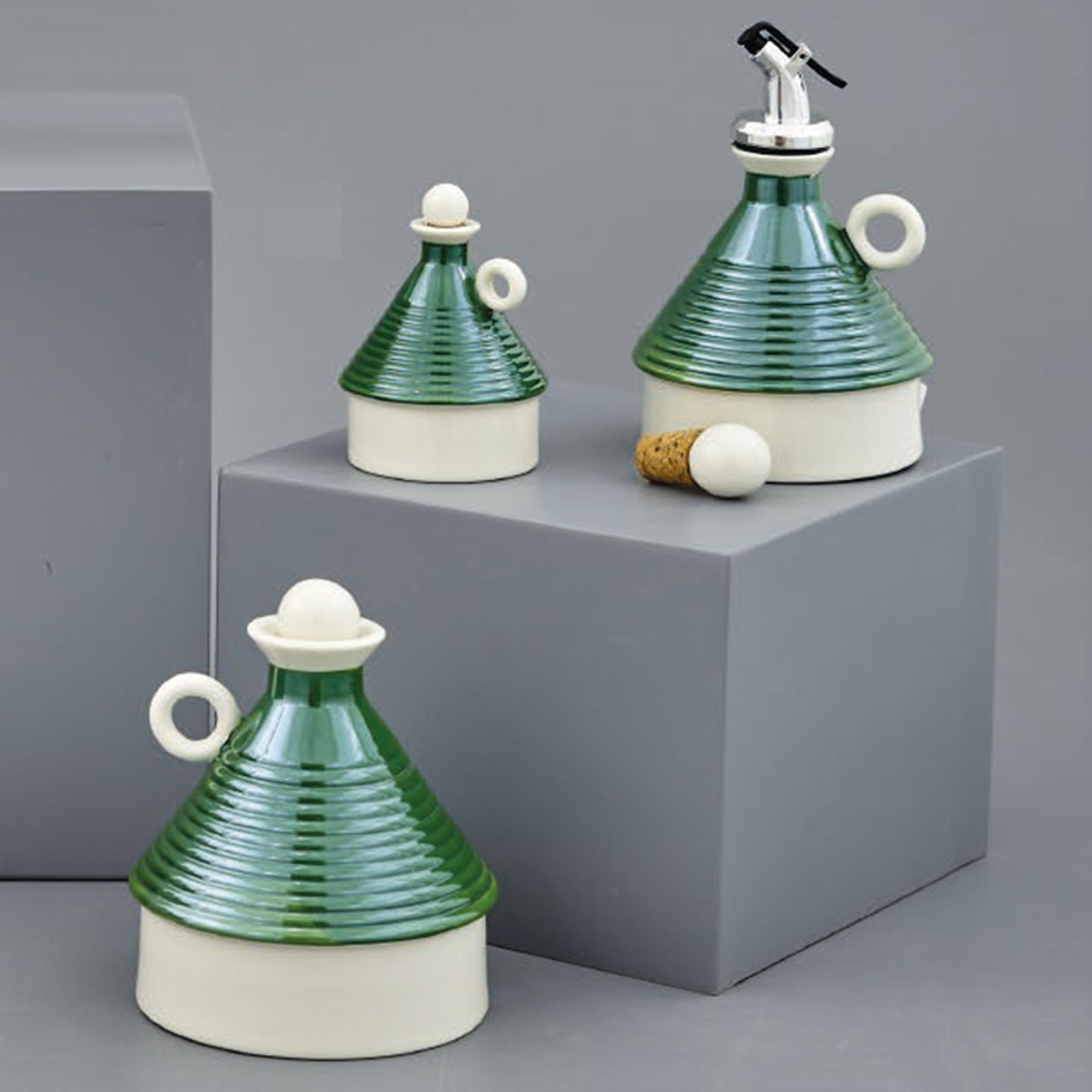 Bellissime oliere in ceramica, a forma di Trullo di Alberobello! Realizzate nella tonalità del verde scuro per il tetto e del bianco per la base, queste praticissime e bellissime oliere sono certificate per alimenti e disponibili in tre dimensioni differenti.