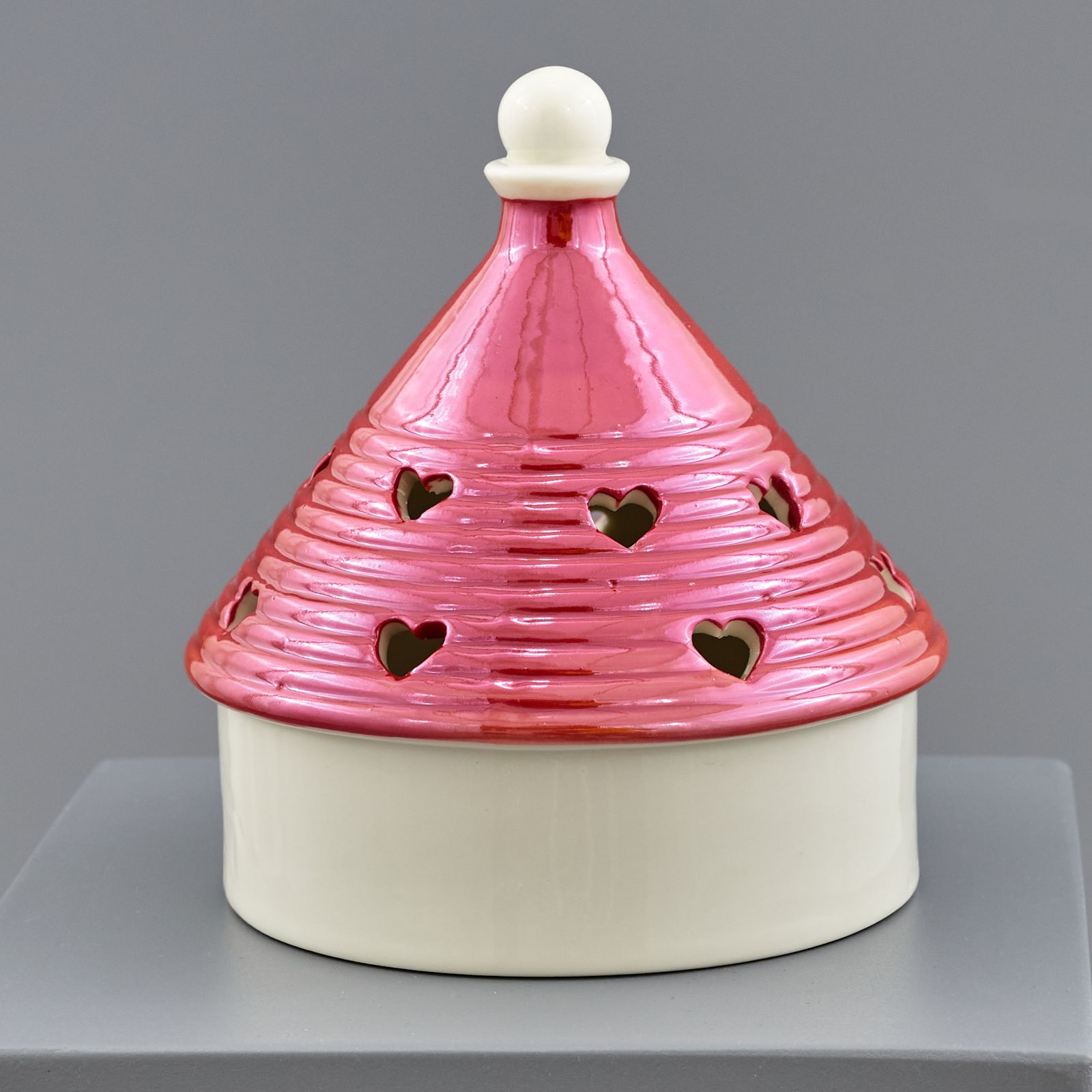 Ti presentiamo l'ultima novità in fatto di bomboniere a tema Puglia! Eccoti i nostri trulli in porcellana con base bianca e tetto rosso come in foto, con fori a forma di cuore attraverso cui passa la luce!