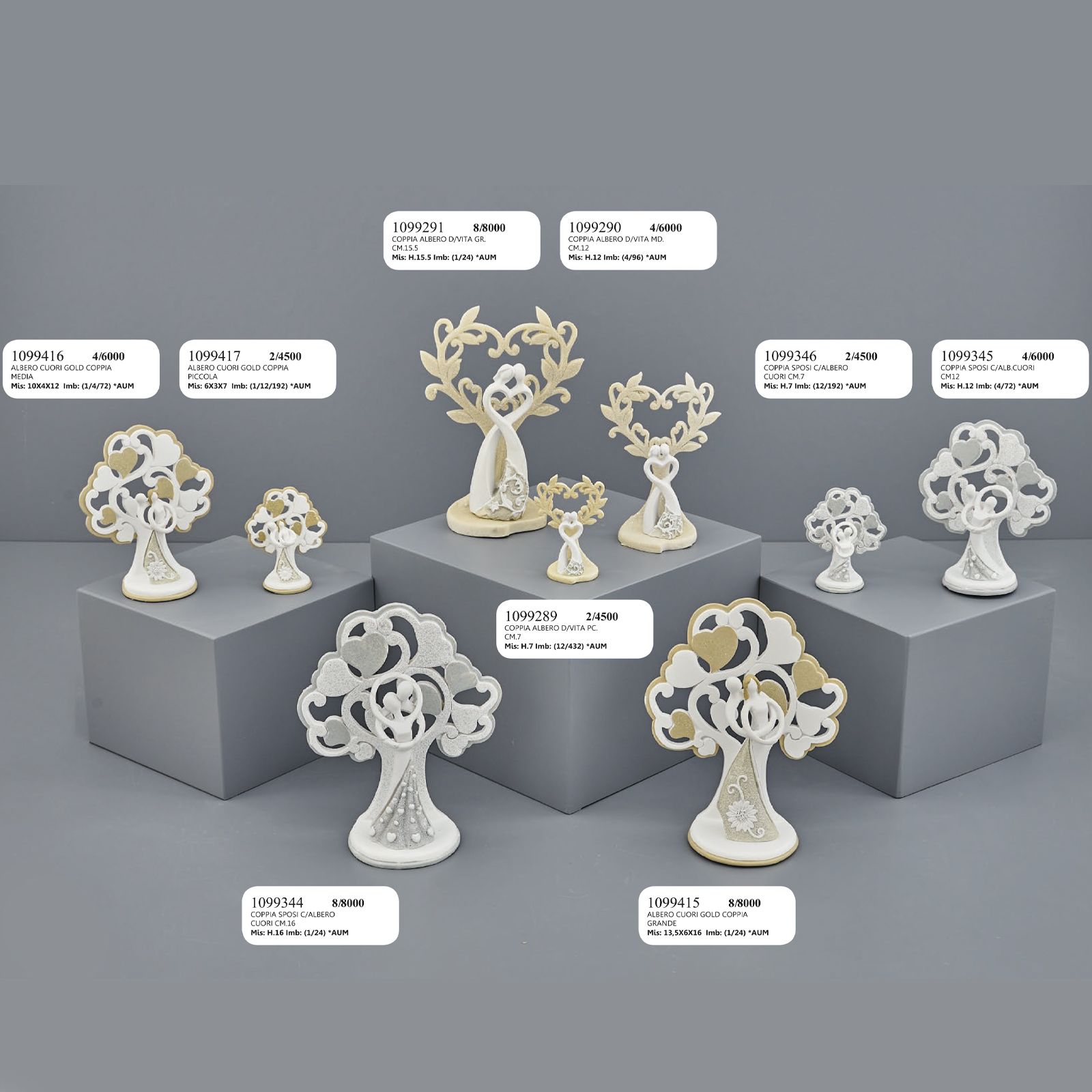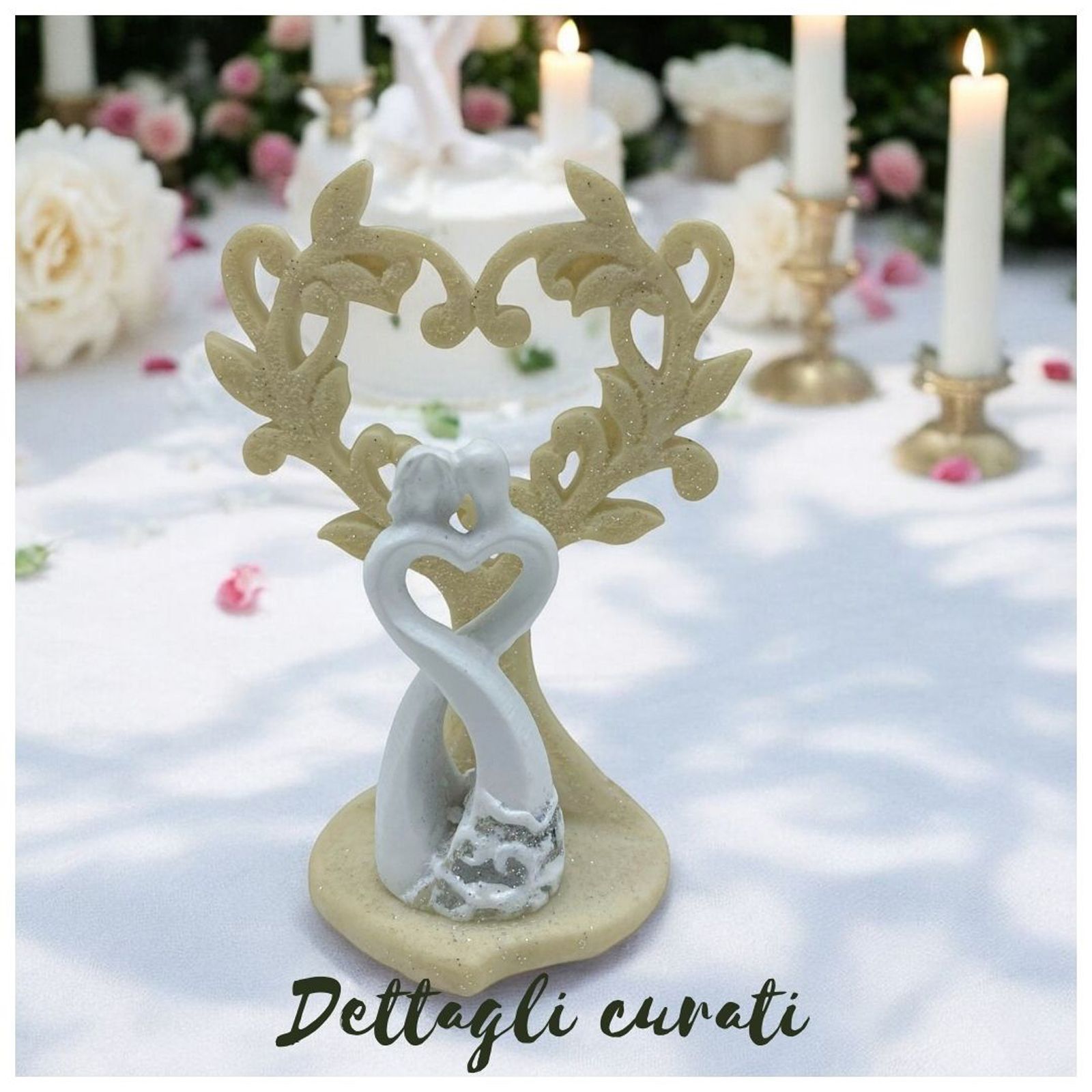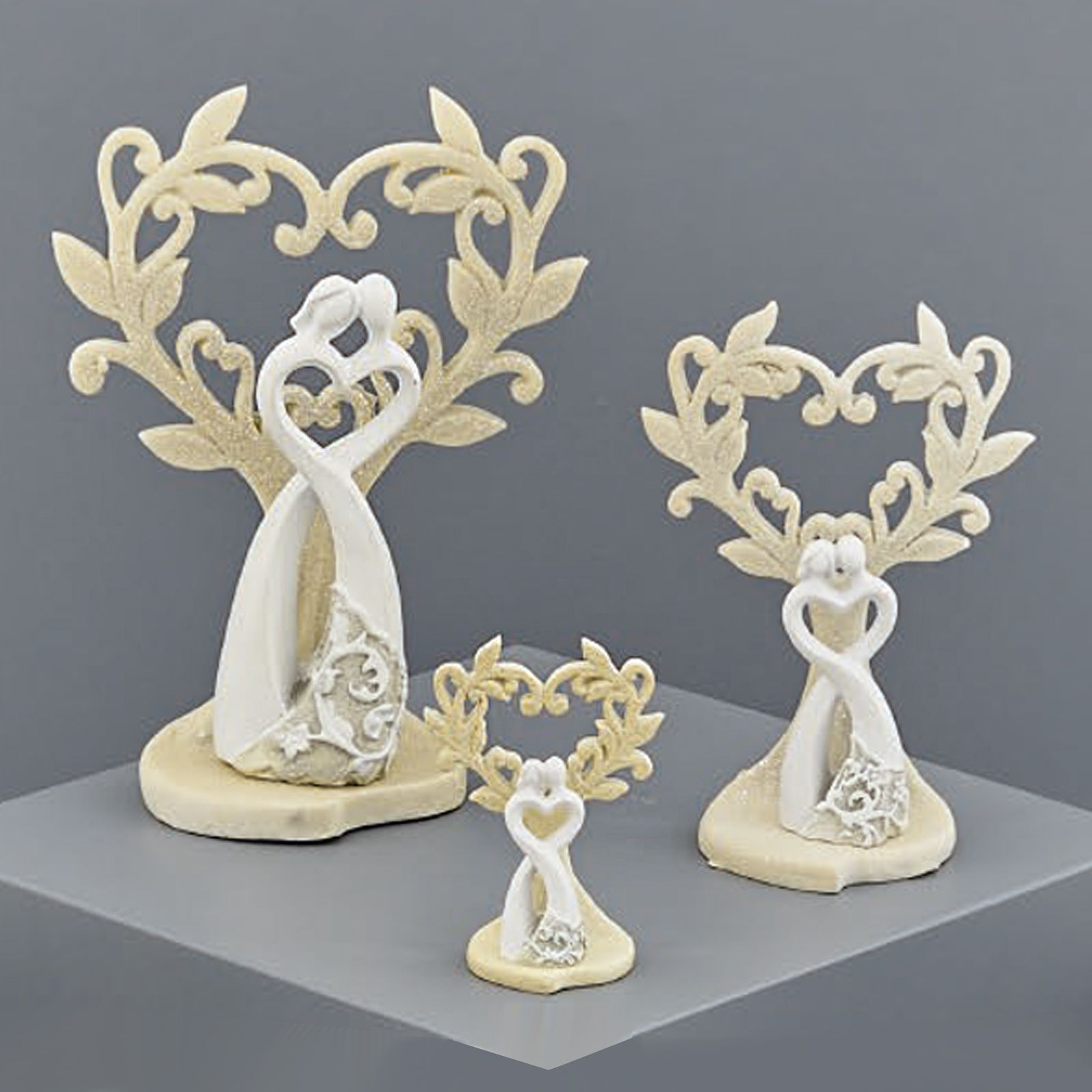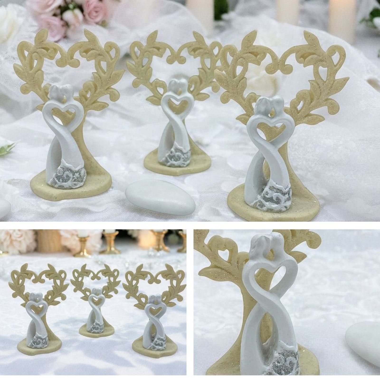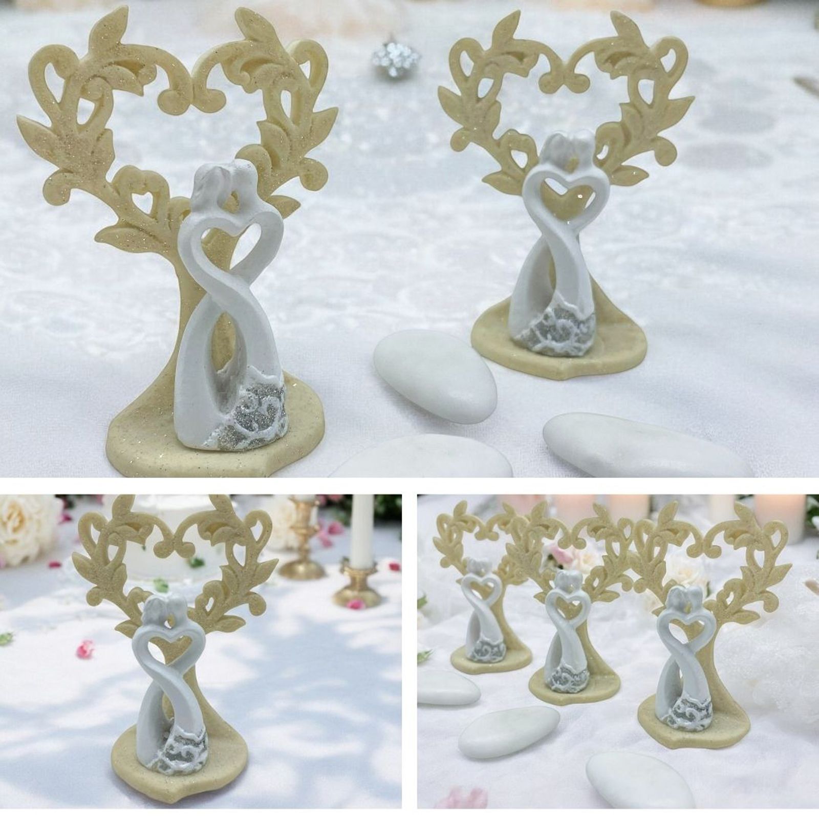 Come questi alberi della vita particolarissimi, con intreccio dei rami a forma di cuore e dolcissima coppia stilizzata alla base in tonalità bianco e crema.