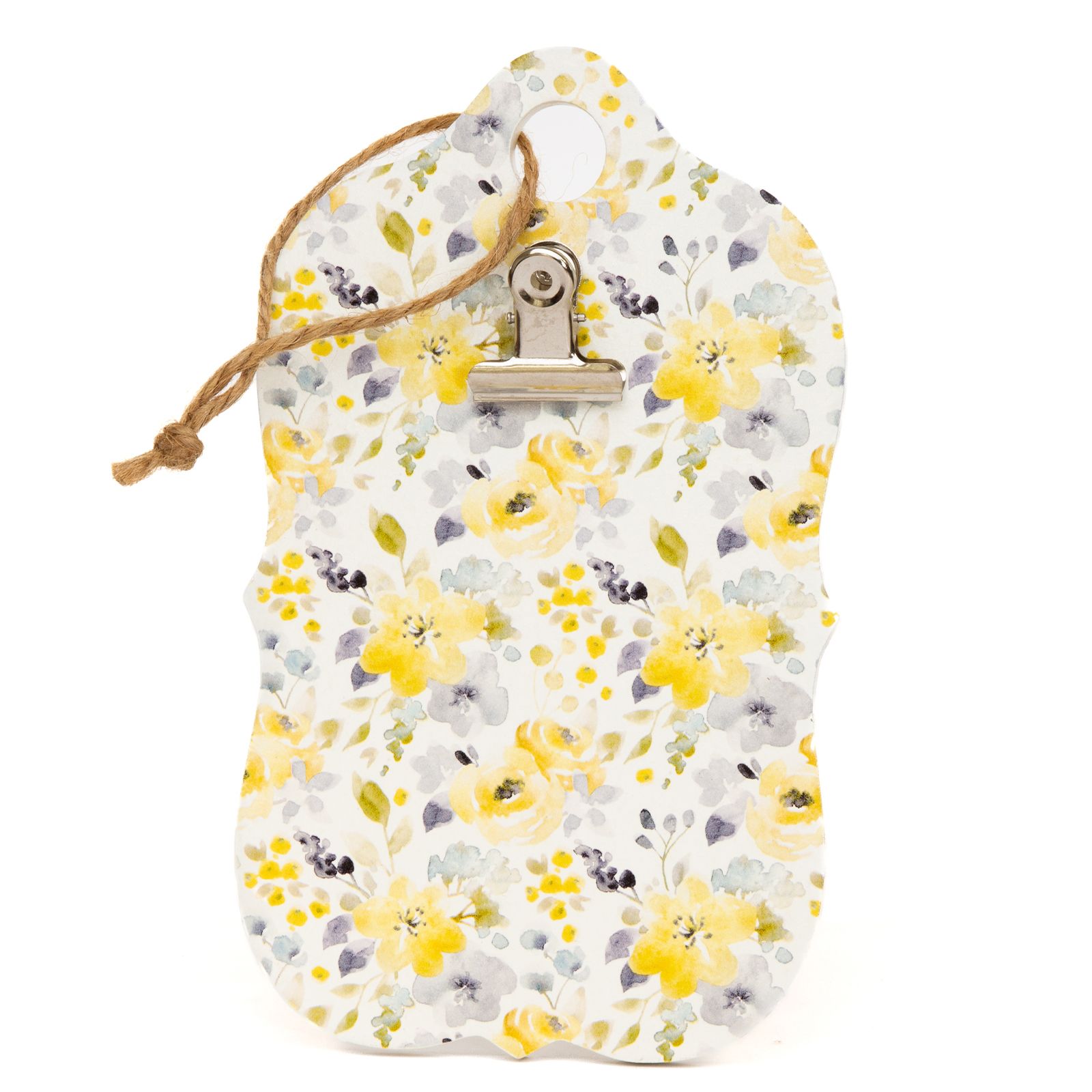 Direttamente dalla collezione Provenza di Cuorematto, abbiamo scelto per te queste graziosissime lavagnette con clip in metallo da appendere con laccetto in corda e fantasia floreale dai sentori provenzali con fiorellini in giallo e lilla.