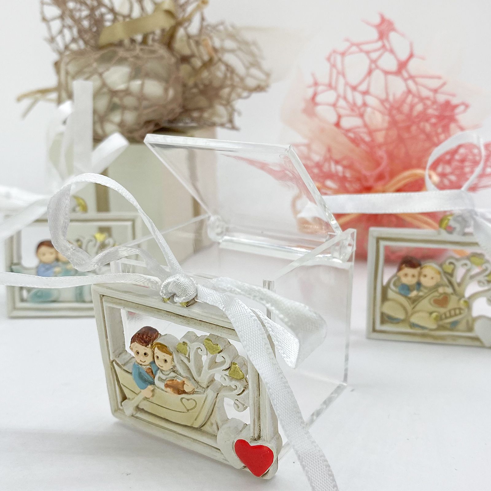 Scegli la nostra bomboniera confettata matrimonio - scatola plexiglass con decorazione sposi in viaggio per condividere con i tuoi cari un momento speciale e indimenticabile.