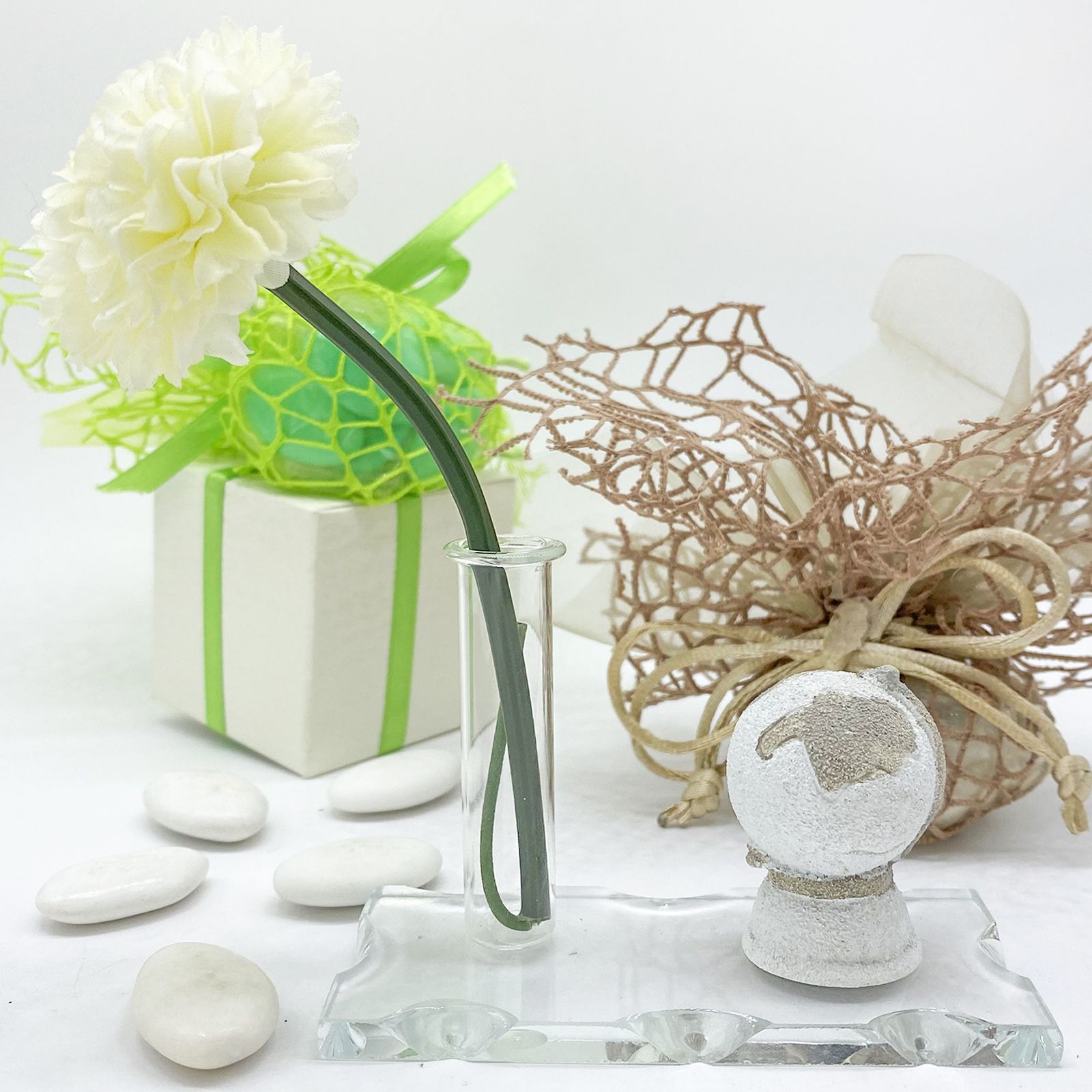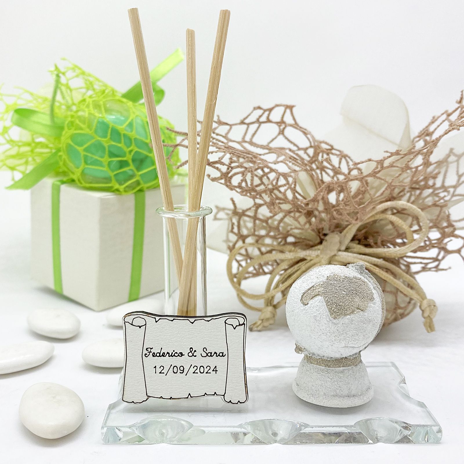 Il nostro e-commerce non solo ti propone prezzi vantaggiosi online, ma ti dà l'opportunità di rendere la bomboniera unica, mostrandoti una simulazione autentica del packaging. Puoi decidere se ricevere il set per confezionarla secondo i tuoi desideri o optare per la bomboniera già preparata, pronta per essere donata. Questa personalizzazione esclusiva aggiunge un valore speciale al tuo dono, rendendolo unico nel suo genere.
