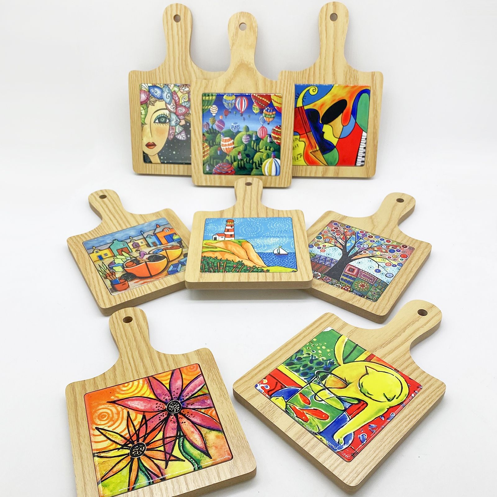 Il tuo giorno speciale merita qualcosa di davvero unico e artistico. La nostra bomboniera è molto più di una sottopentola a forma di tagliere; è un'opera d'arte in legno e ceramica decorata con dipinti in stile naif. Questa forma di espressione artistica emana creatività spontanea, ignorando le regole convenzionali della rappresentazione.