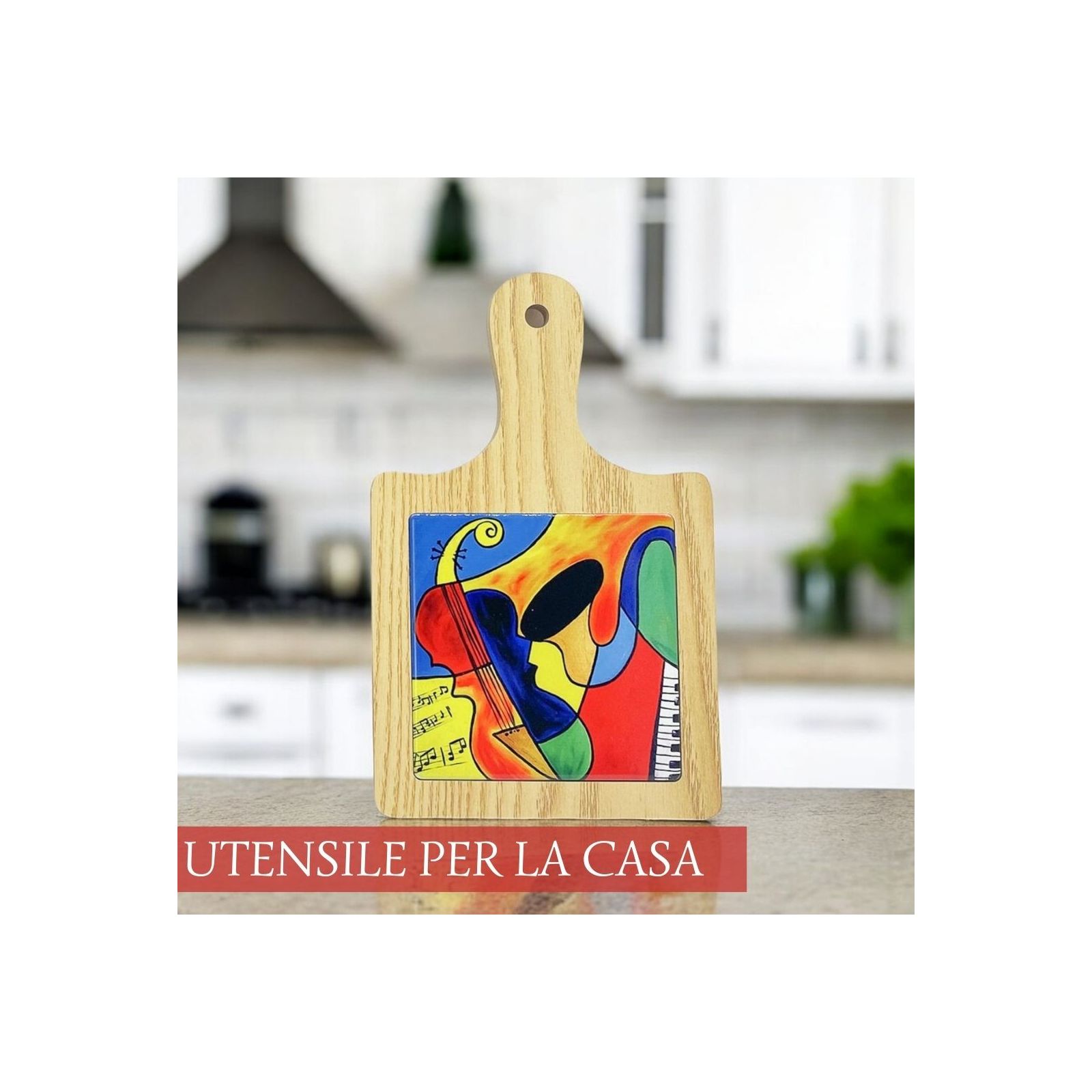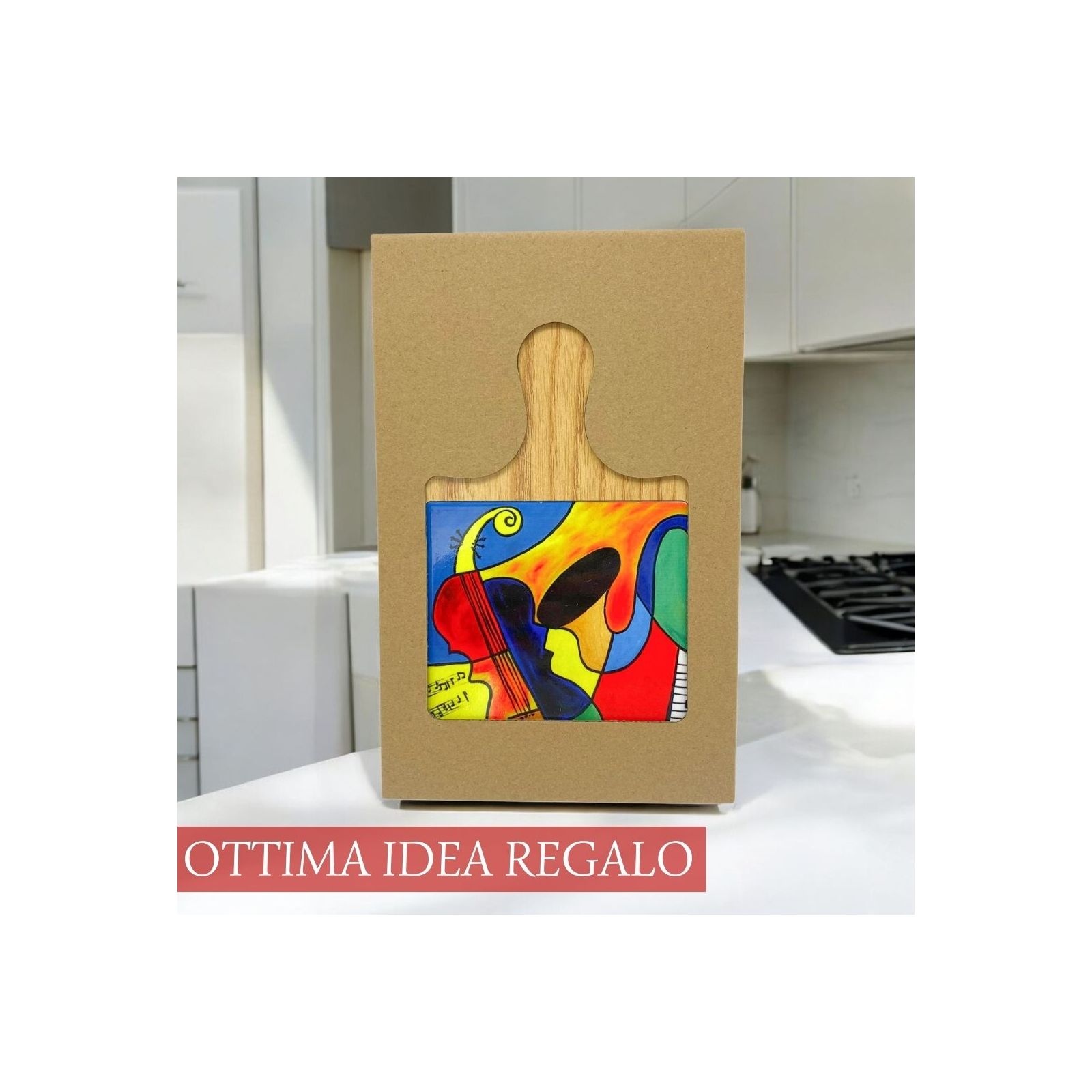 Aggiungi un tocco di arte alla tua cucina con questo sottopentola tagliere colorato e allegro.
