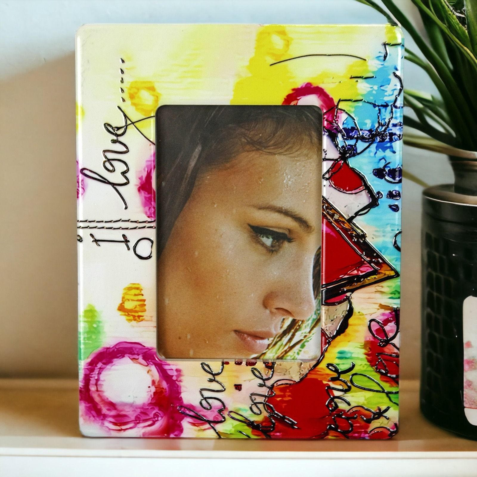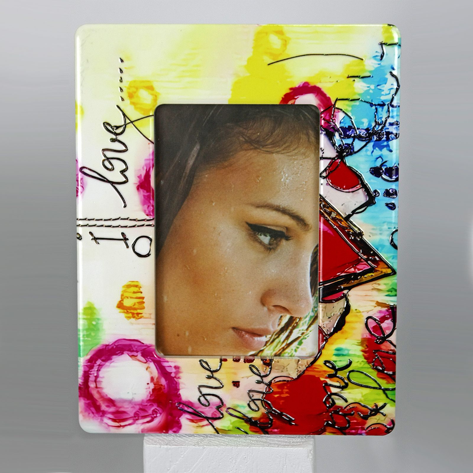 Questa cornice colorata, come da foto, è un tocco perfetto per matrimonio, anniversari di matrimonio, regali di Natale, e San Valentino.
