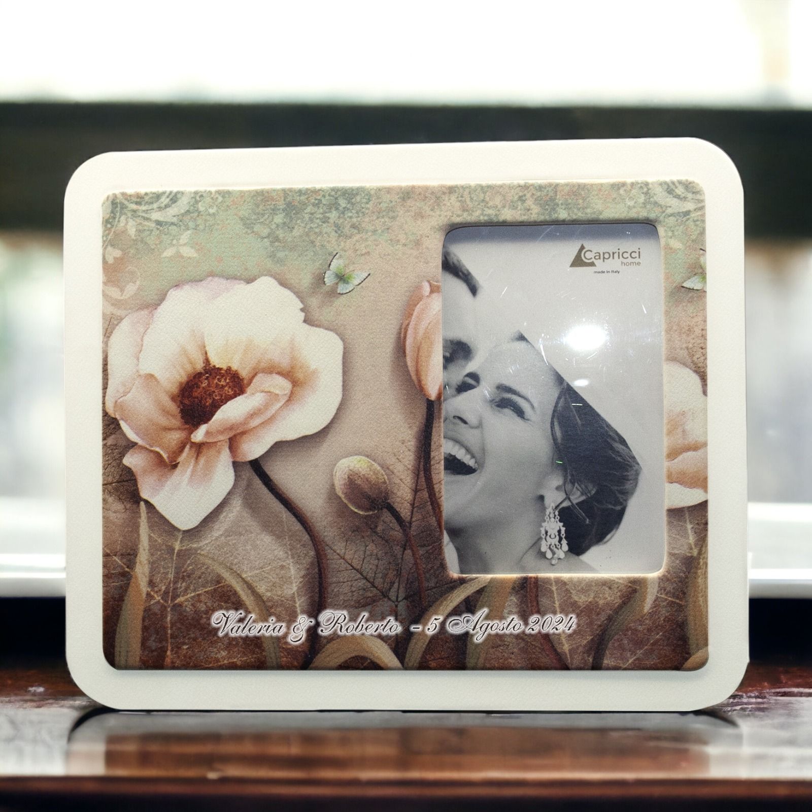 La nostra bomboniera cornice portafoto da tavolo in ecopelle è un'opzione versatile e affascinante per celebrare le occasioni più significative.