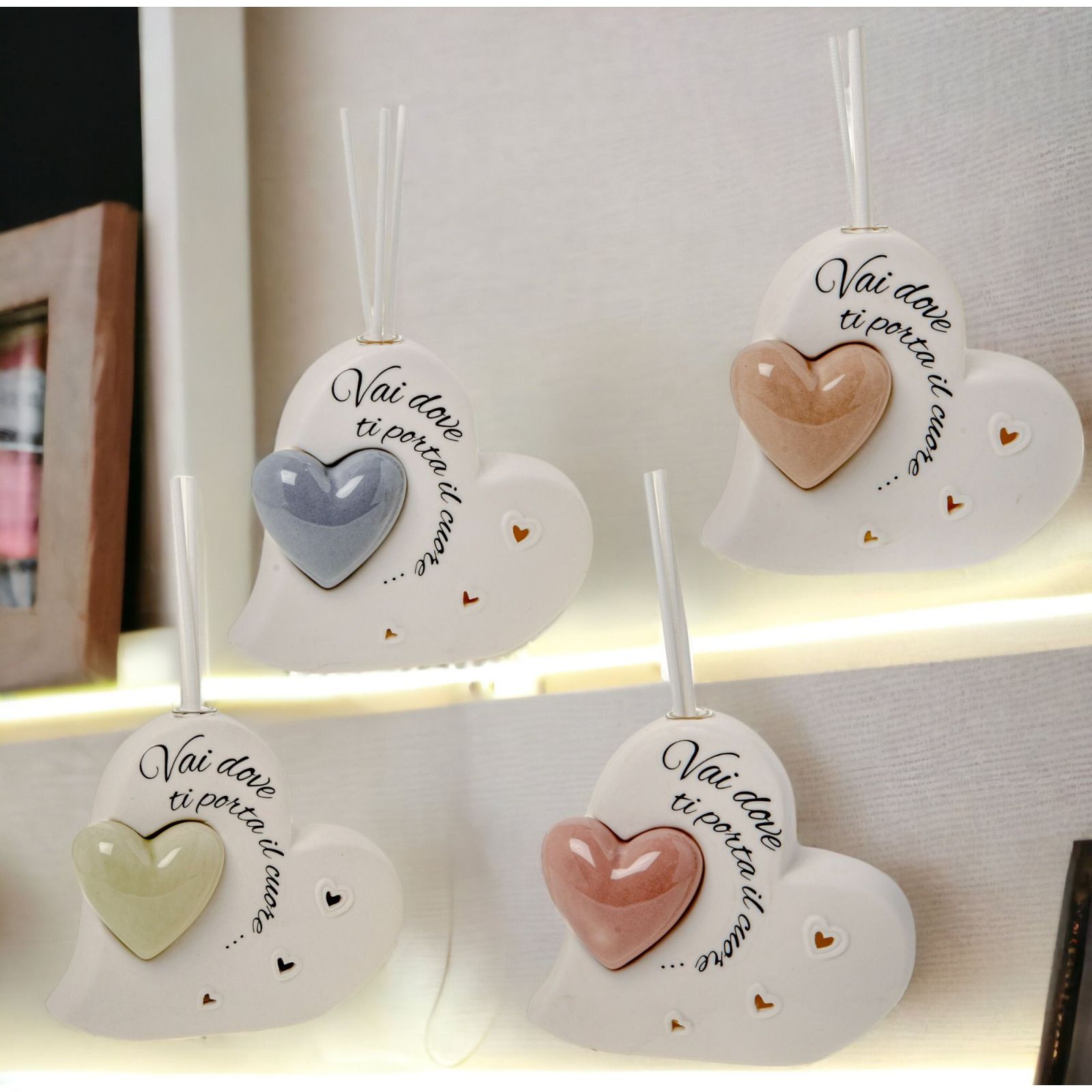Amore, passione, originalità. Se sei alla ricerca di una bomboniera unica e speciale, guarda questo diffusore essenza a forma di cuore con la frase "va dove ti porta il cuore".