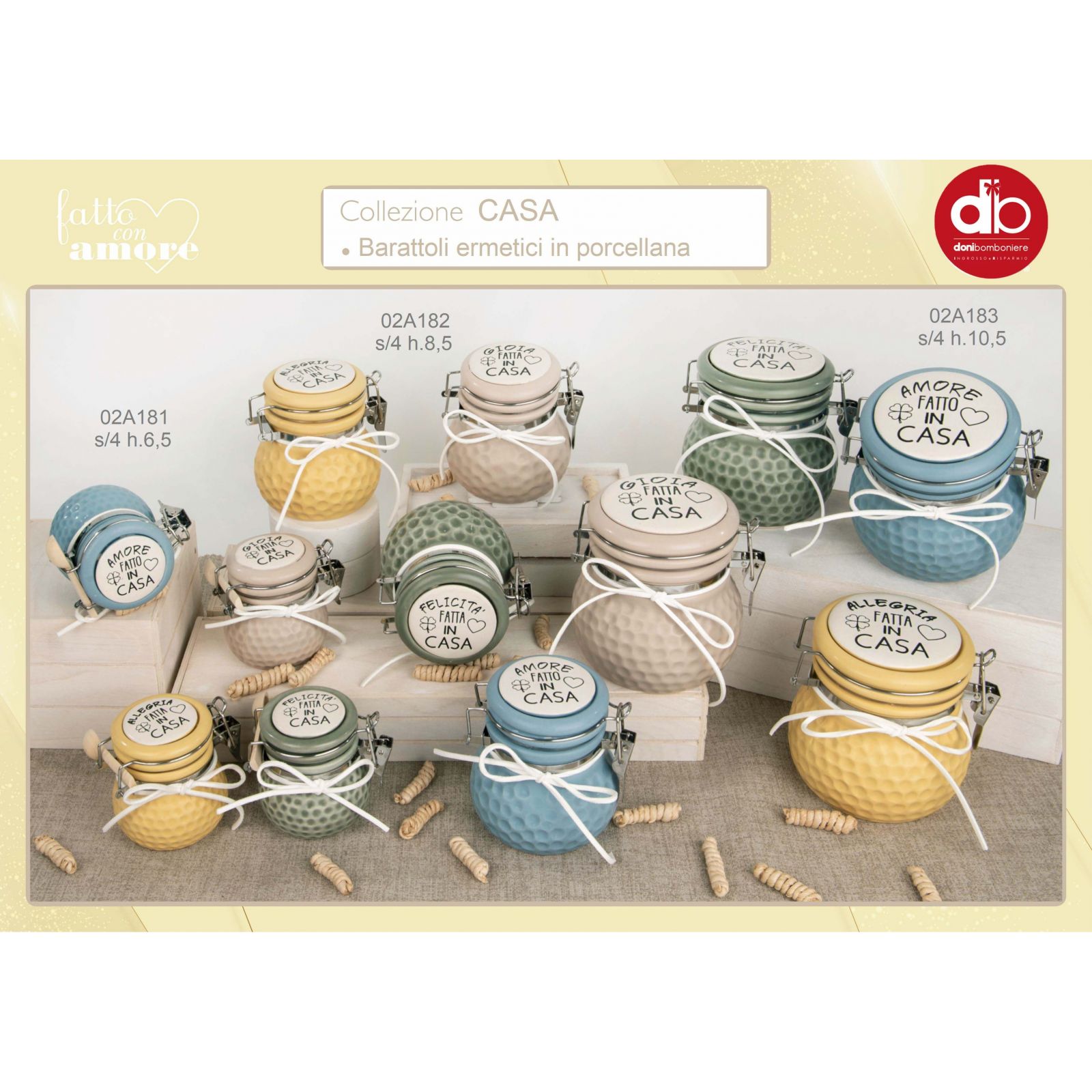 Il regalo perfetto per celebrare tutti i momenti speciali della tua vita! I nostri barattolini sono ideali come segnaposto, portaconfetti, portaspezie o bomboniere, per un matrimonio, un anniversario, una prima comunione o una santa cresima, e sono disponibili in tre dimensioni, tutte in porcellana: Standard H. 6,5 cm (con cucchiaino), Grande H. 8,5 cm e Maxi H. 10,5 cm.