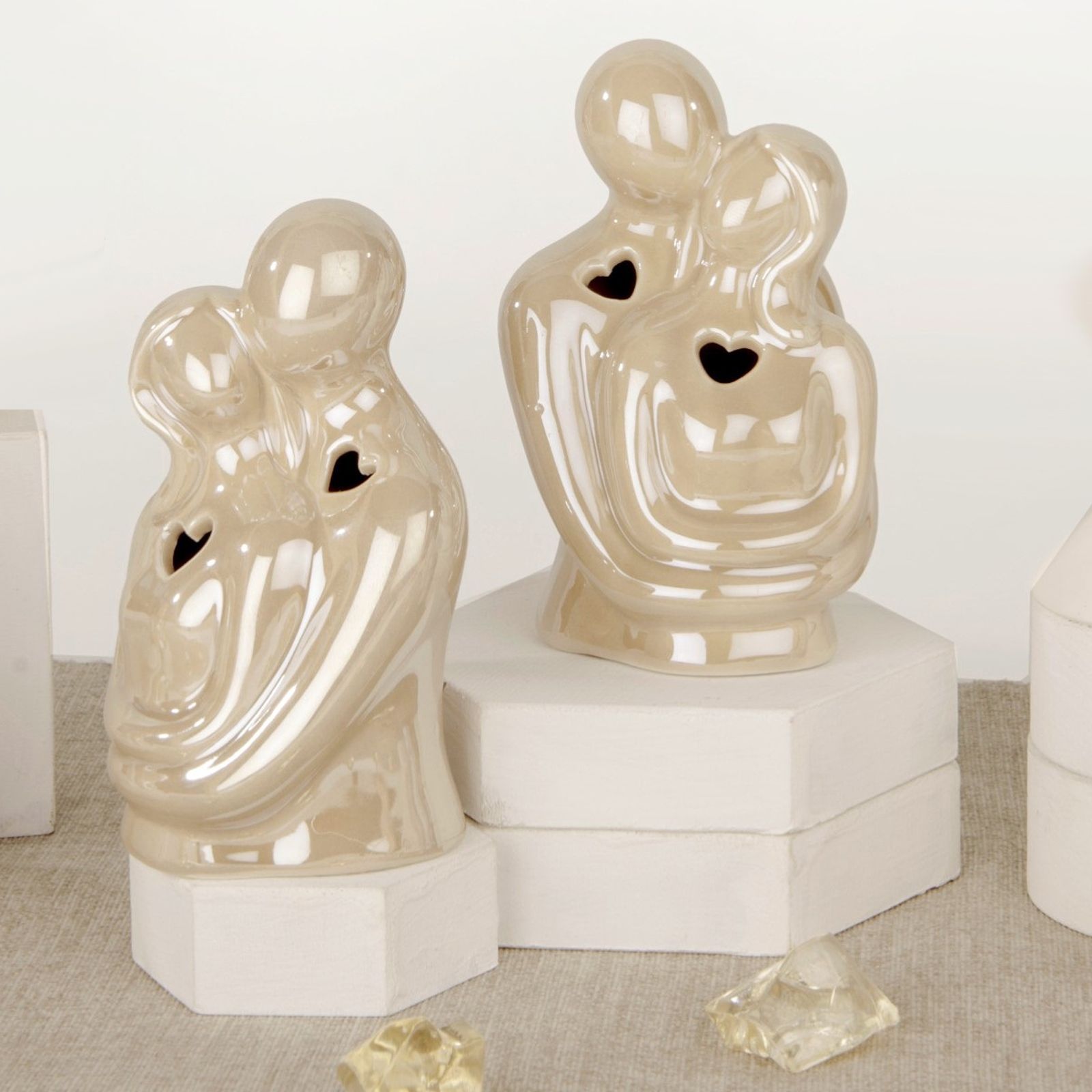 Regala una bomboniera utile ai tuoi invitati con questa lampada led a forma di coppia di innamorati che si abbracciano con cuoricino traforato. Una lucina notturna perfetta per celebrare un matrimonio, un anniversario o una promessa di matrimonio. Realizzata in porcellana di colore tortora, misura 9,5 cm di altezza. Un regalo originale e unico per i tuoi sposi e le loro partecipazioni nozze.