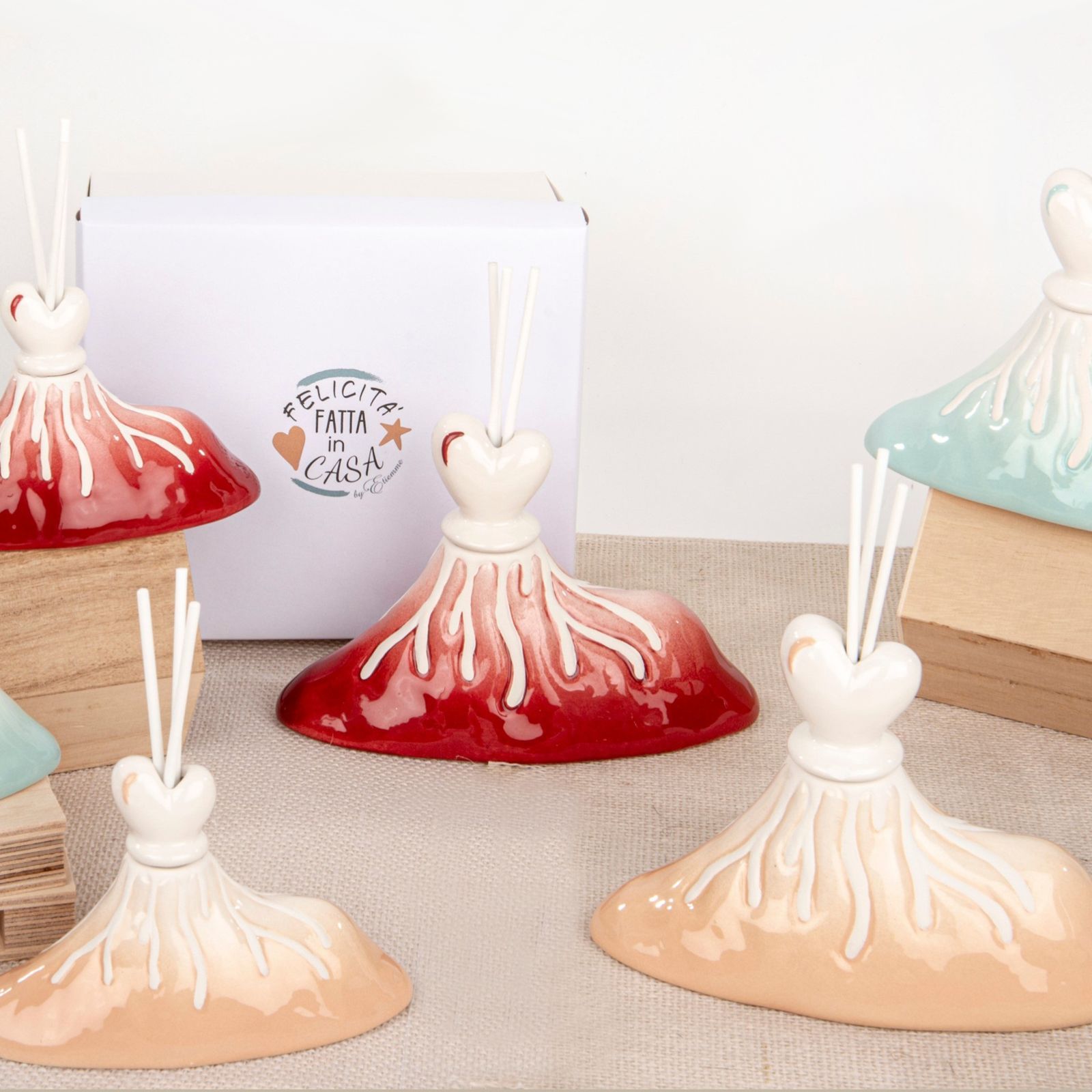 Il diffusore di essenze a forma di vulcano darà un tocco di magia ad ogni evento importante , perché è un oggetto unico e dal design moderno, che unirà profumo, colore e stile in un unico prodotto. Scatola regalo con scritta "allegria fatta in casa",bacchette ed essenza inclusi nel prezzo.