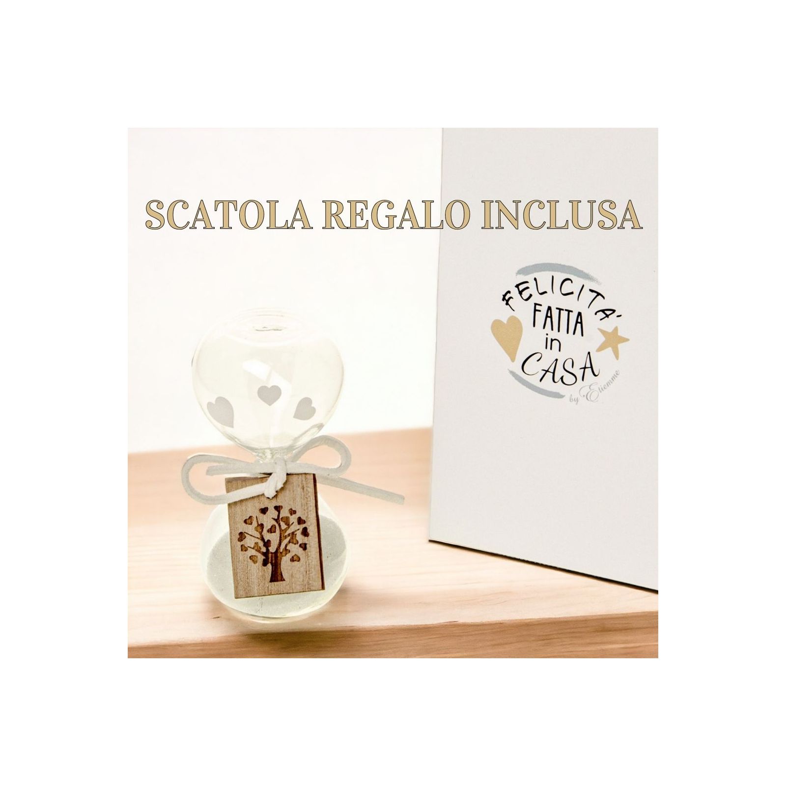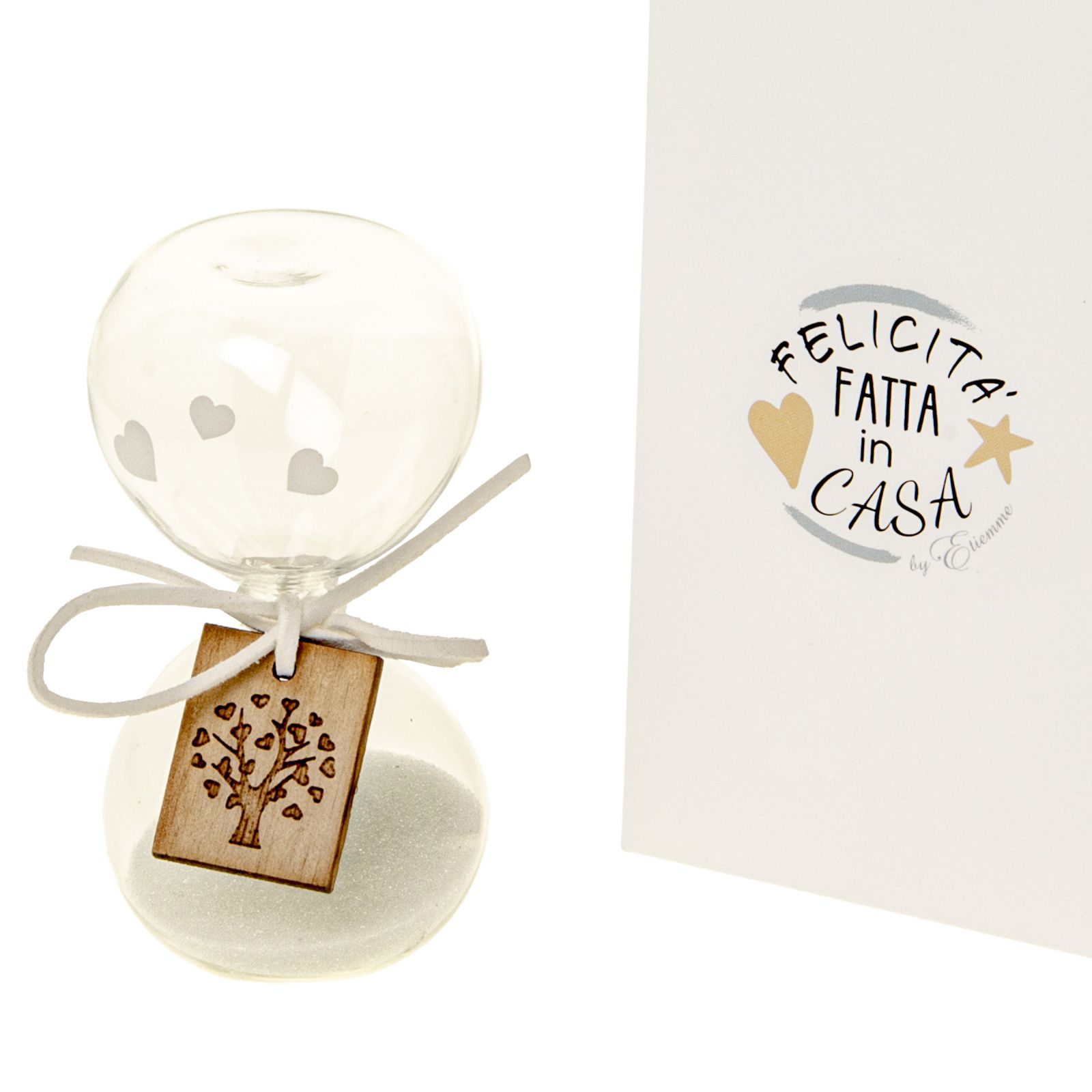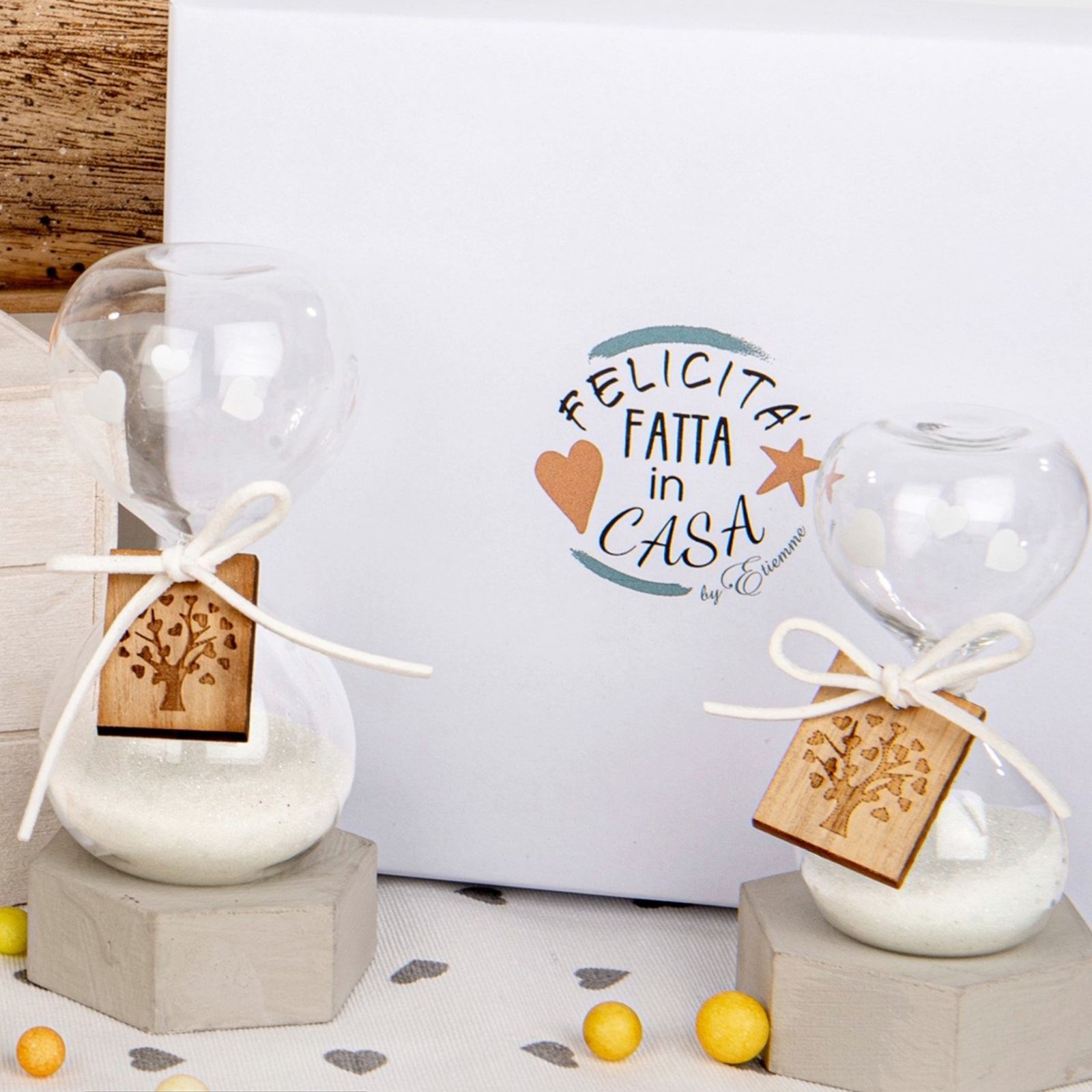Questa clessidra è il simbolo di felicità e amore e può essere regalata per diversi eventi come la prima comunione, la santa cresima, il matrimonio, l'anniversario o la promessa di matrimonio. Regalare una clessidra rappresenta la ricerca di radici solide, la rinascita della vita e la voglia trascorrere del tempo insieme.