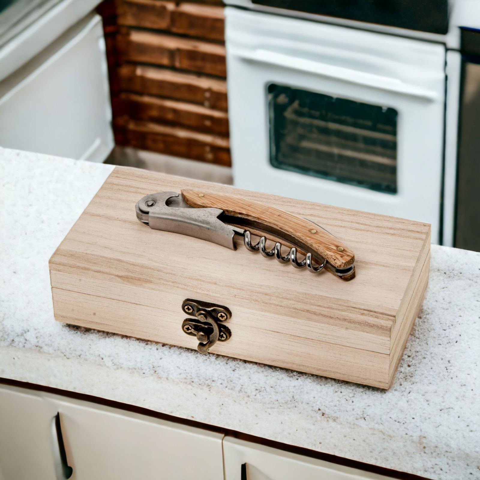 La bomboniera Cavatappi in legno e metallo con elegante scatola in legno in omaggio è un'idea bomboniera perfetta per festeggiare un matrimonio, un anniversario o una laurea.