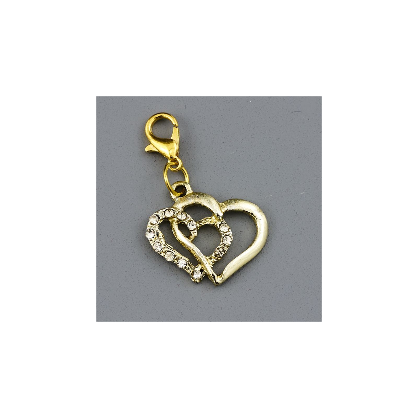 Un ciondolo dorato a forma di cuori intrecciati con strass è un'ottima e simbolica idea regalo per celebrare una ricorrenza speciale! Il charm misura 2x1,8x0,3 cm, ed è di colore dorato; è perfetto come segnaposto accessorio per una confettata, per far sentire il tuo amore agli invitati e renderli partecipi del momento speciale.