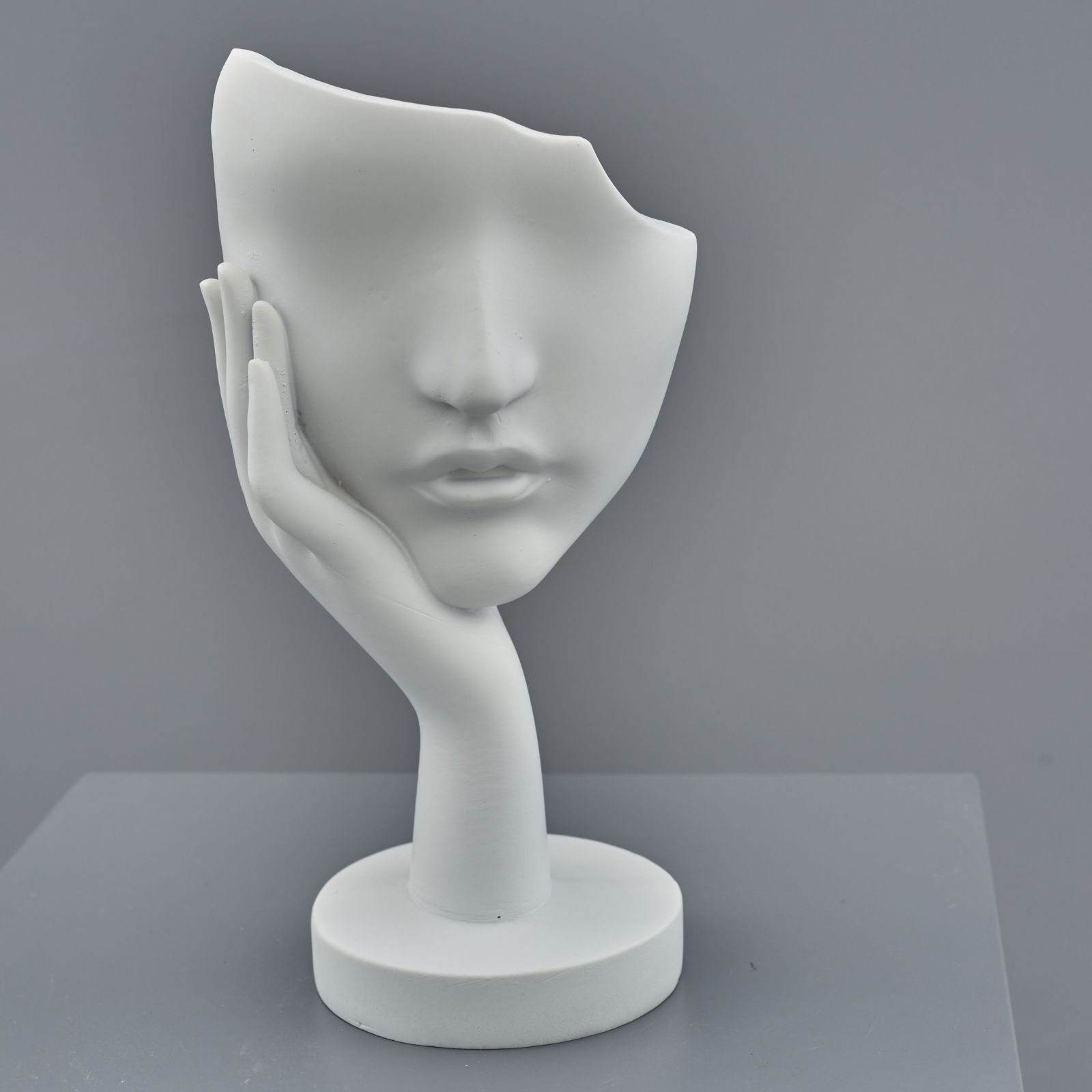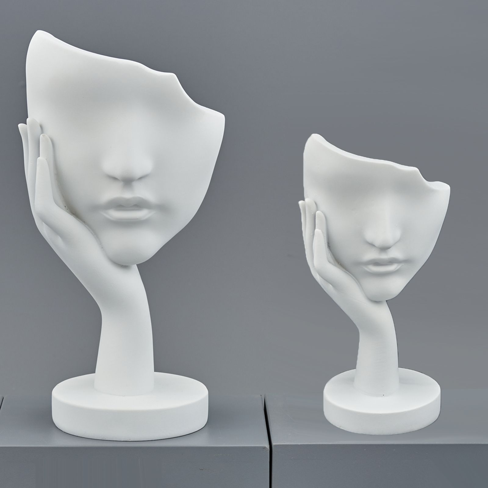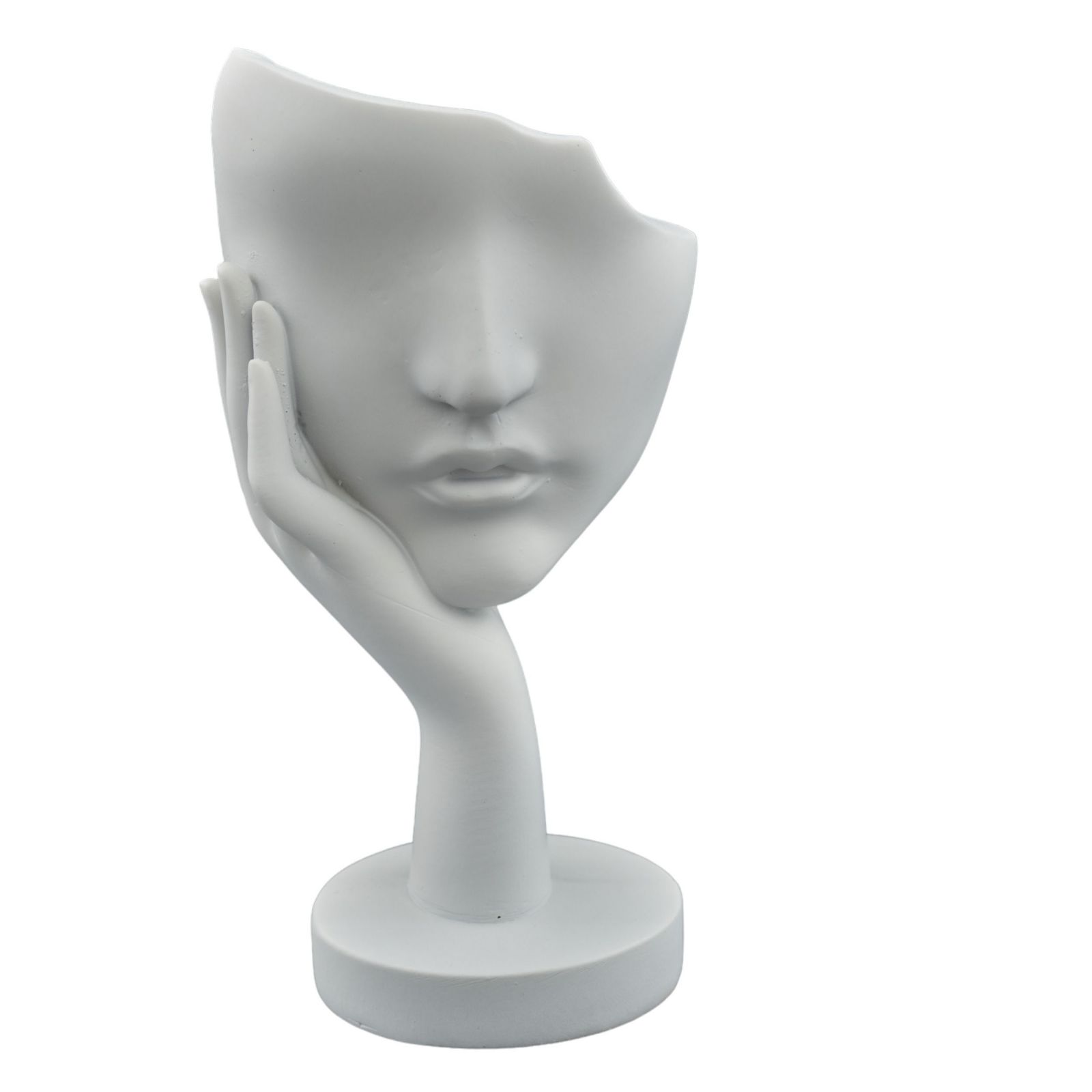 Regala un ricordo indelebile con questa straordinaria scultura moderna da tavolo con un viso sognante poggiato su una mano.