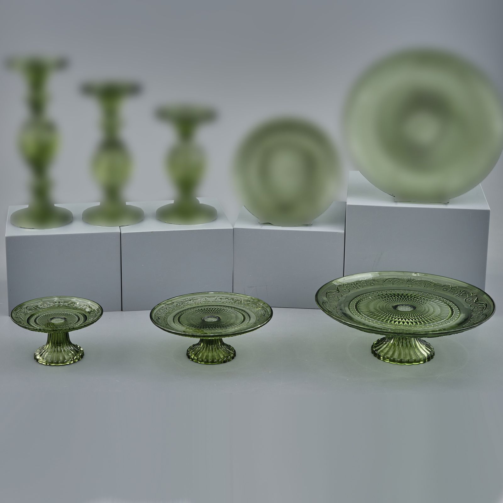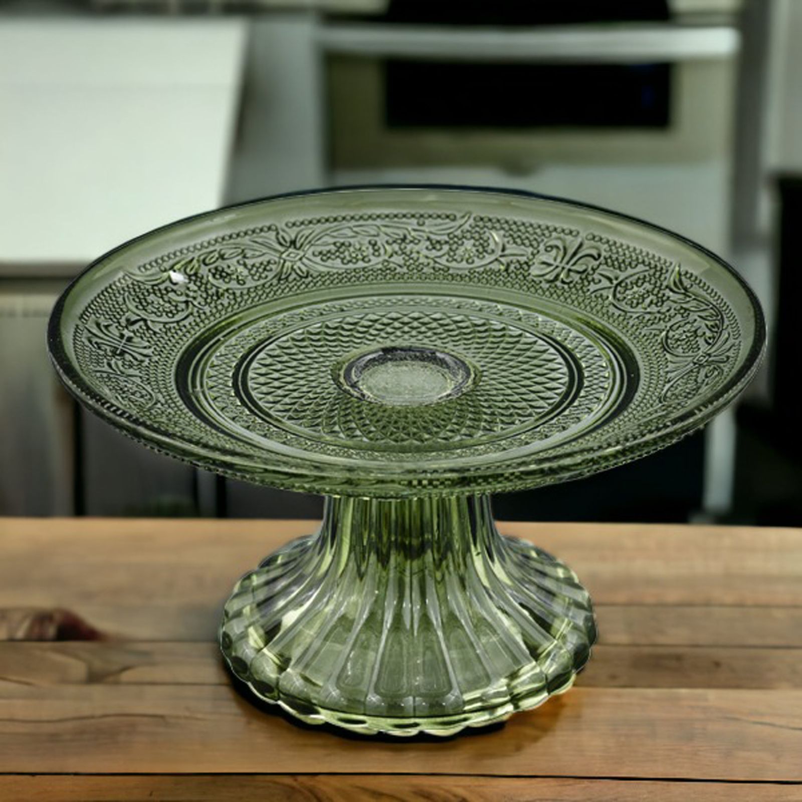 Realizzata con materiali di alta qualità, questa alzata aggiungerà un tocco di classe al servizio di dolci, torte o biscotti. Il colore verde trasparente conferisce un'atmosfera fresca e raffinata al tuo tavolo, creando una presentazione accattivante per le tue delizie.