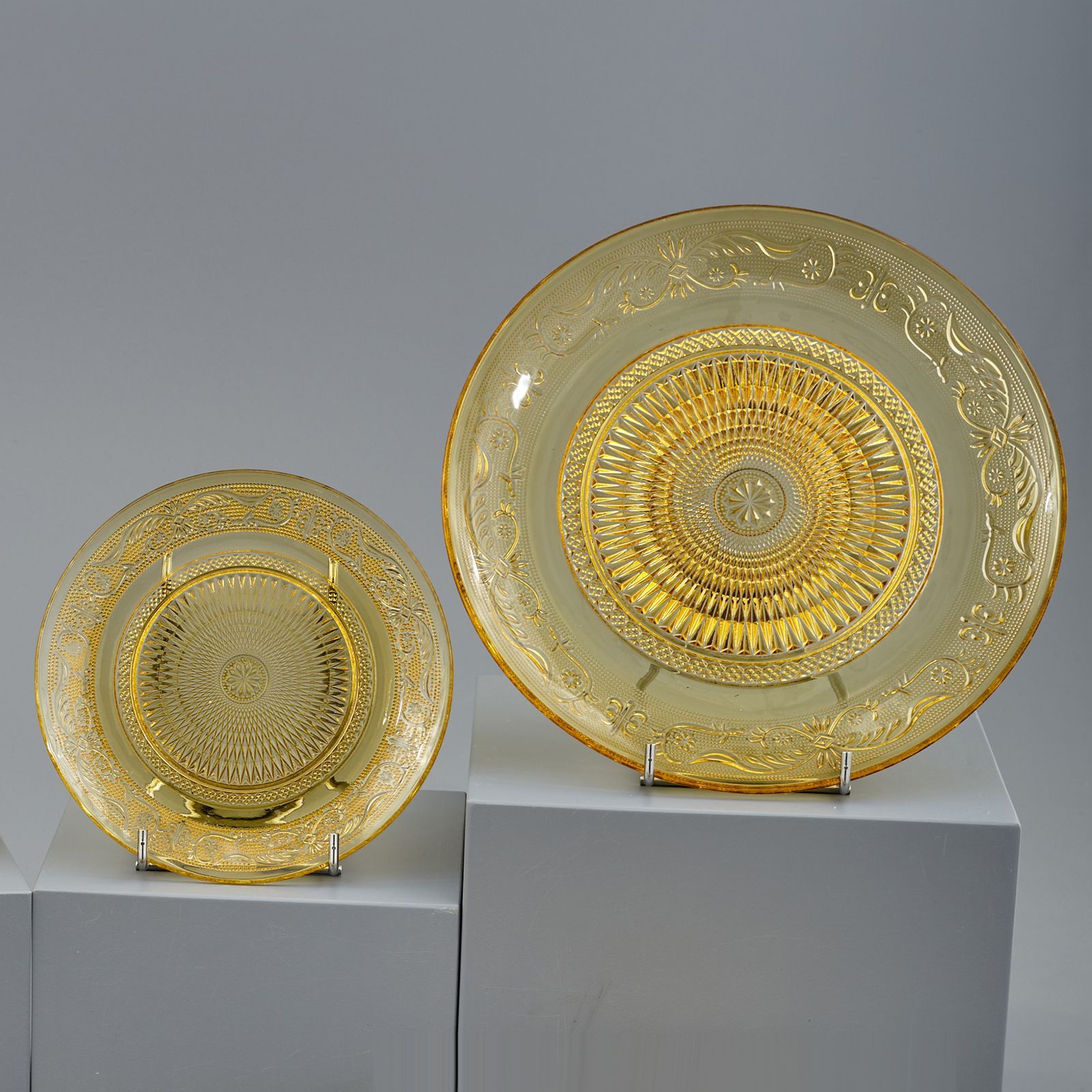 Scegli la dimensione che meglio si adatta alle tue necessità e usa il nostro piatto come piatto da portata, piatto per dolci, piatto per biscotti o antipastiera. Scegliere questo piatto color oro trasparente come bomboniera vuol dire trasmettere ai tuoi ospiti un segnale di grande ricercatezza ed eleganza.