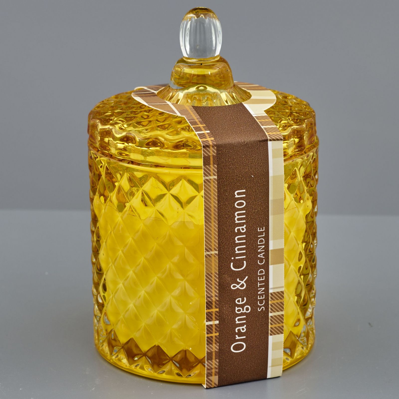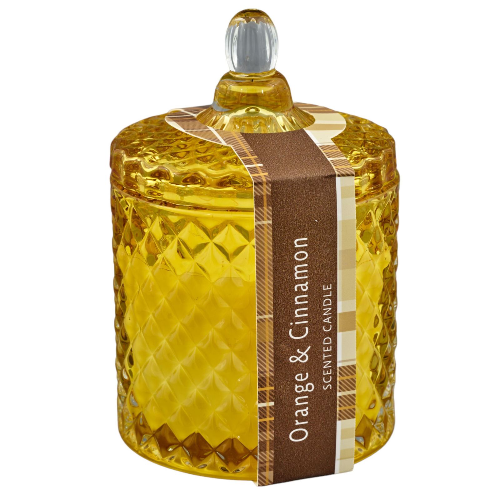 Realizzata in vetro effetto diamante e color ambra, questa bomboniera misura 8,5x8,5x13 ed ha una candela da 170 gr. Inoltre, la sua profumazione di arancia e cannella renderà ancora più suggestiva la tua celebrazione.