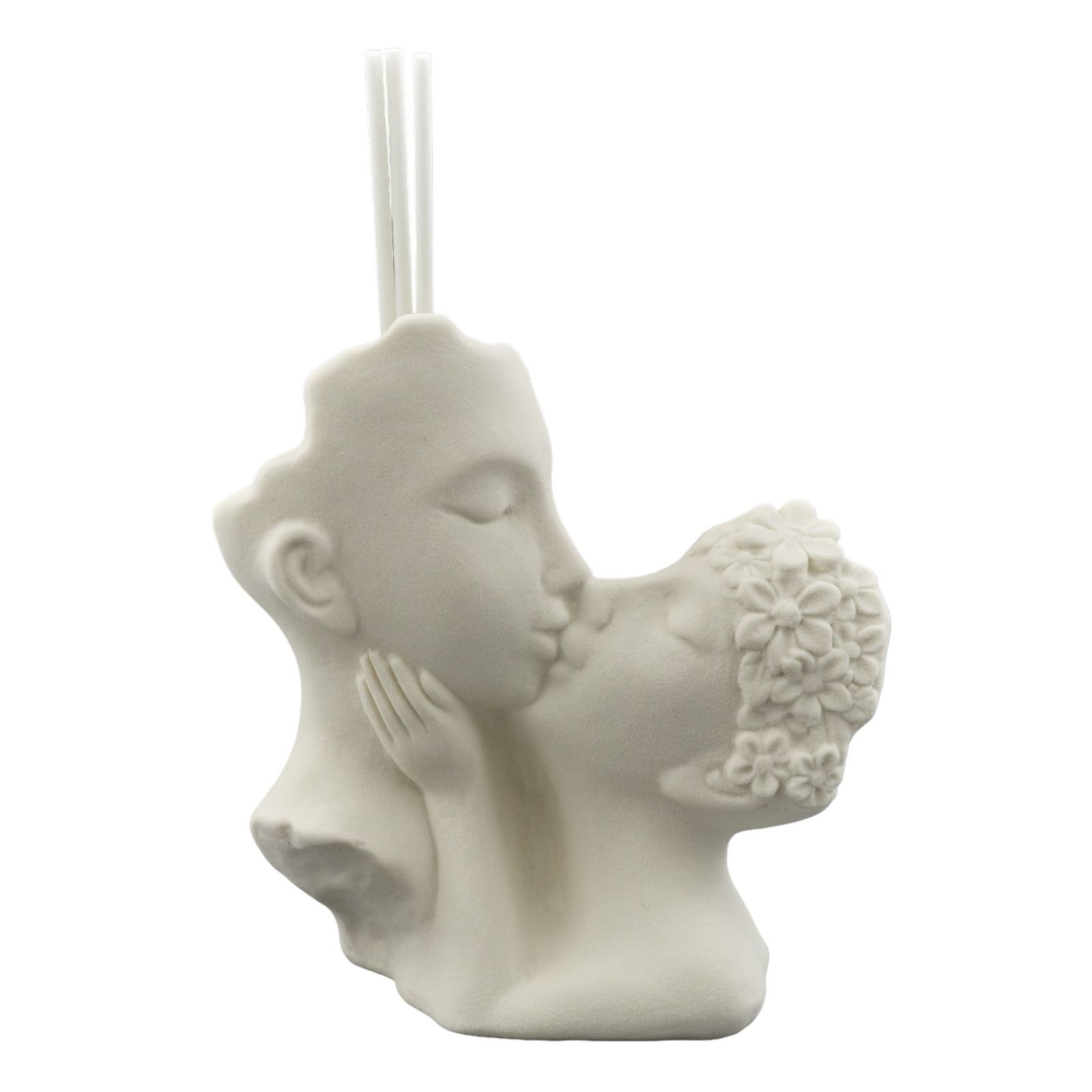 Lasciati affascinare dalla resina bianca che racchiude una coppia di innamorati che si baciano. Questo profumatore ambiente misura 12x6x12 circa e diventerà una bomboniera indimenticabile per un matrimonio, un anniversario .