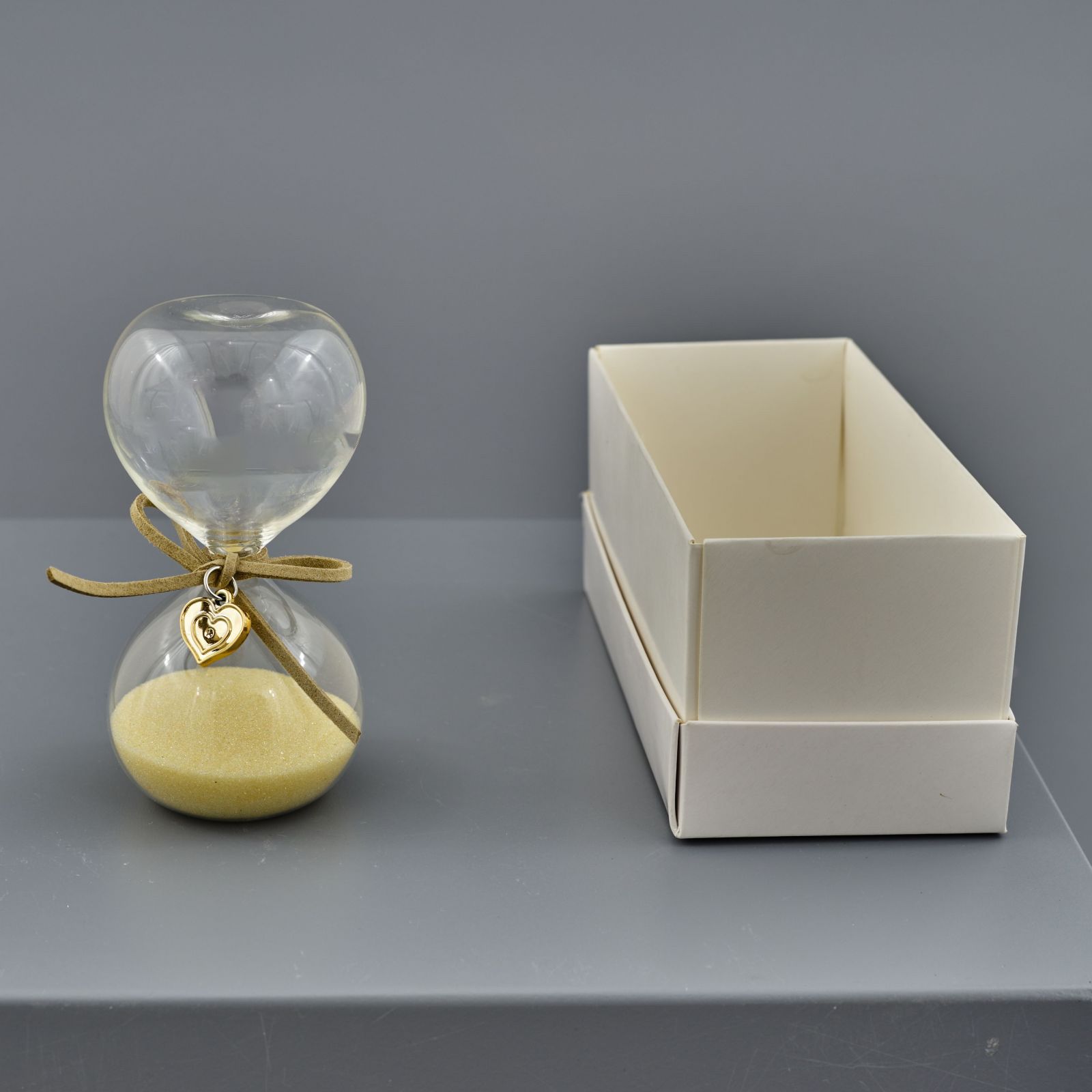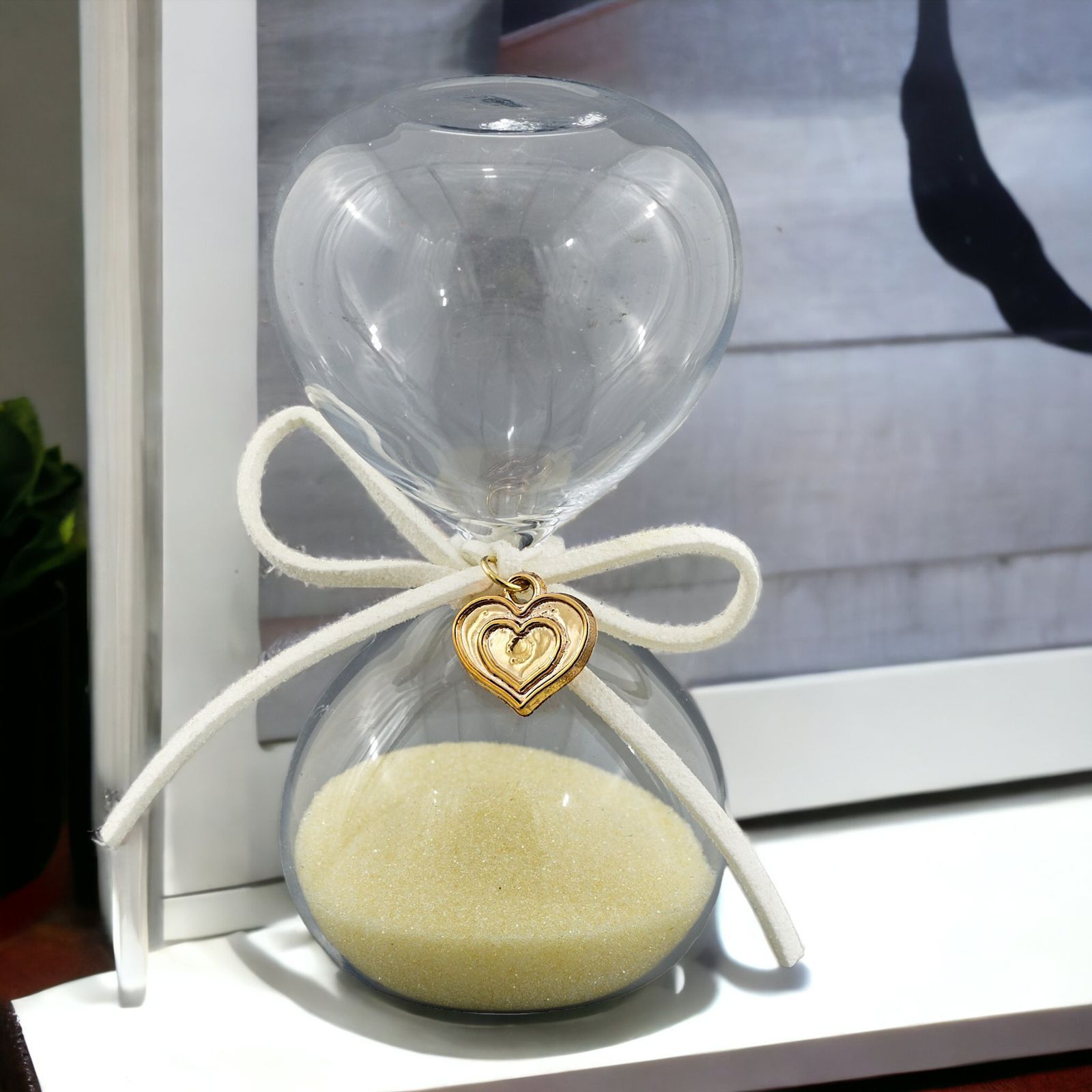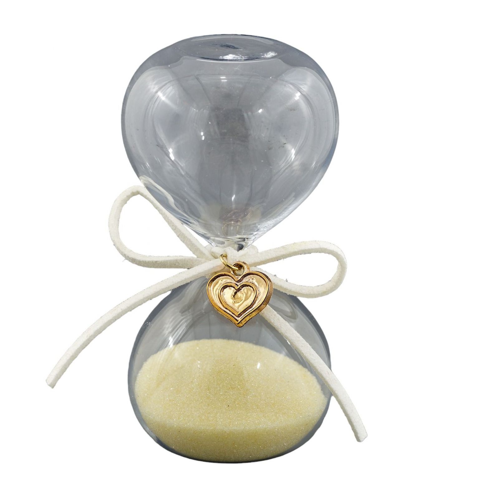 Regala un gesto unico con la nostra bomboniera in vetro con sabbia ocra. Una clessidra dai toni caldi e delicati, con un nastrino bianco a formare un grazioso fiocco sul collo, accompagnato da un cuoricino in metallo. Un dono elegante e originale, perfetto per celebrare matrimoni, anniversari e promesse. Disponibile nelle due misure - Standard 5x5x10 cm circa; Grande: 5x5x12 cm circa - e con una scatola regalo inclusa nel prezzo. Un dono utile, ma soprattutto emozionante e significativo, in grado di rappresentare un momento speciale da ricordare. Trova le idee originali e complete per le tue partecipazioni e bomboniere 50 anniversario, nozze economiche e particolari.