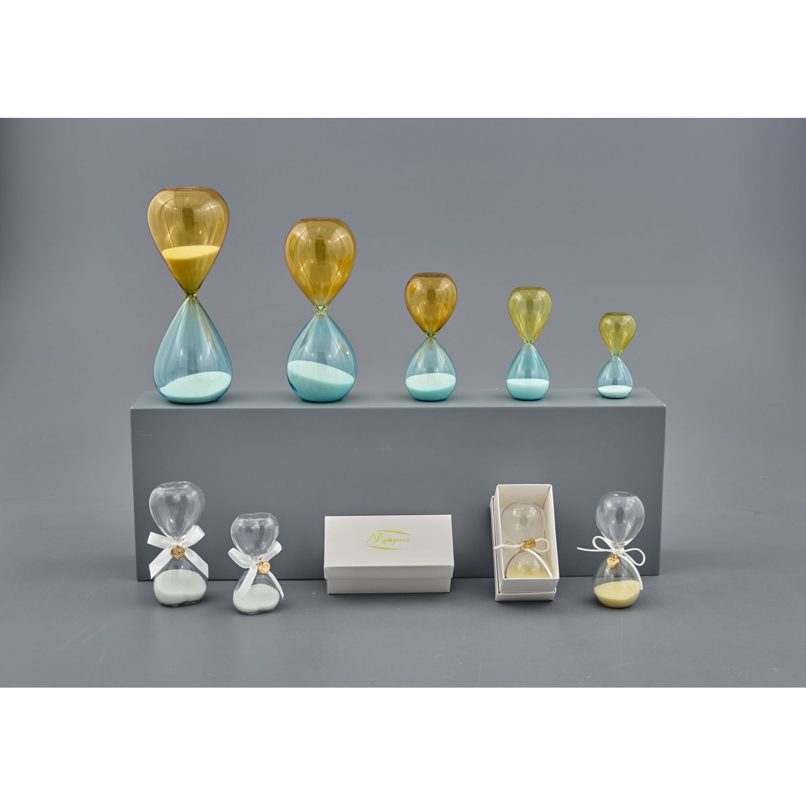 Regala bomboniere e partecipazioni uniche ed eleganti! L'idea di avere un ricordo speciale è quello di cogliere l'occasione di 50° anniversario, matrimonio o promessa, con questa splendida clessidra di vetro con sabbia bianca, un nastrino bianco e un cuoricino in metallo.