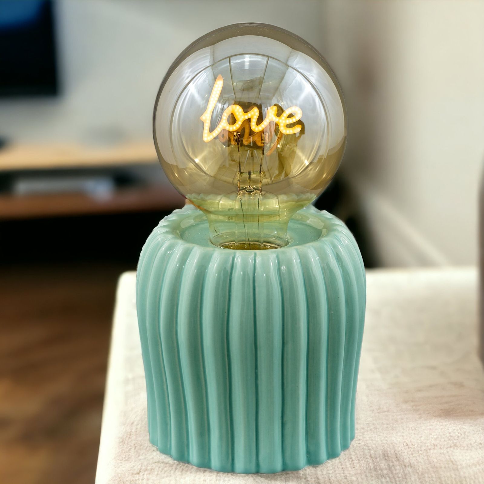 Realizzata in porcellana, di un delizioso colore verde, questa lampada è l'idea regalo perfetta per matrimoni, nozze, anniversari e promesse di matrimonio. Con la sua stampa di scritta love, questa bomboniera è unica ed originale.Il prezzo è riferito ad un singolo prodotto.