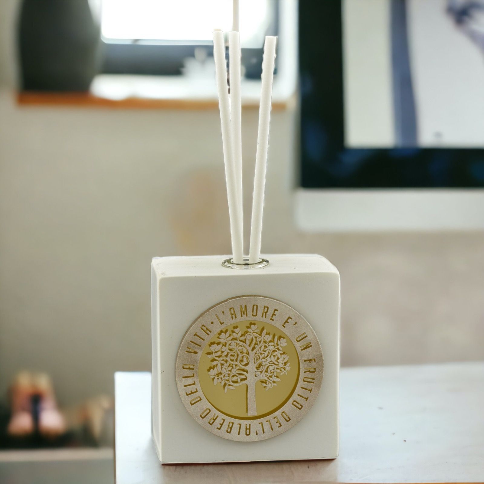 Regala un tocco di eleganza e significato ai tuoi ospiti con la nostra Bomboniera Profumatore con Albero della Vita. Inciso con la frase "L'amore è un frutto dell'albero della vita", questo profumatore è il ricordo perfetto per matrimoni e anniversari.
