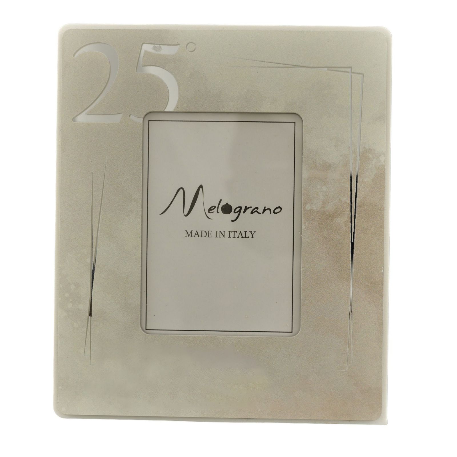 La cornice con numero 25° è disponibile in due misure diverse: una standard (H.16X13CM) e una grande (H.23X18CM).